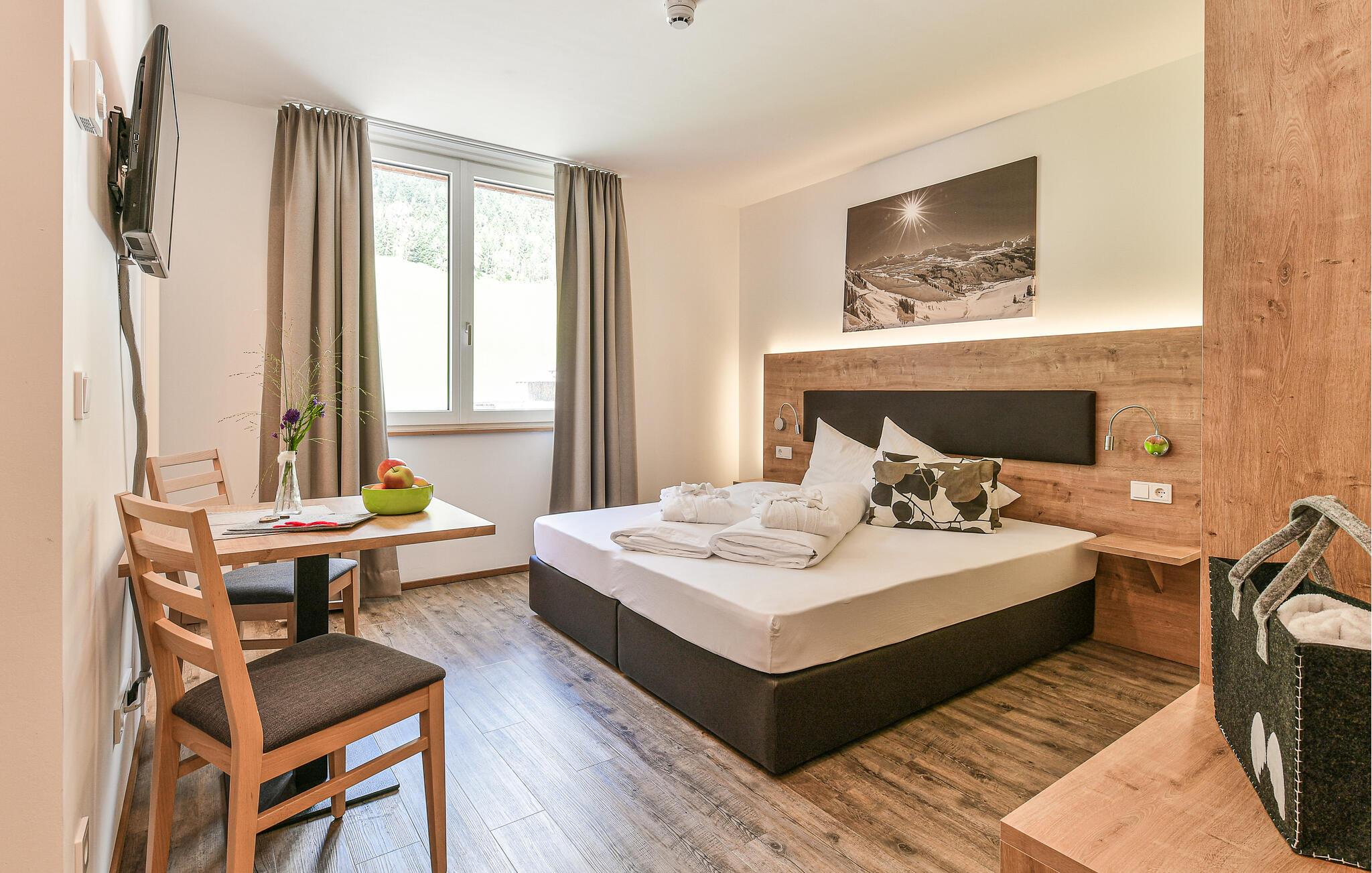 Nyd en eksklusiv ferie i Klösterle. Lejlighederne her er indrettet efter en høj standard og ligger enten på 1. eller 2. sal. Der er tre forskellige bookingtyper i størrelserne 60 m², 35 m² og 25 m². Møblerne kan variere lidt. Et højdepunkt er panorama-SPA-området højt over tagene i Klösterle. Her kan I pleje sjælen med dampbad, finsk sauna, eventyrbrusebad og afslapningsrum.