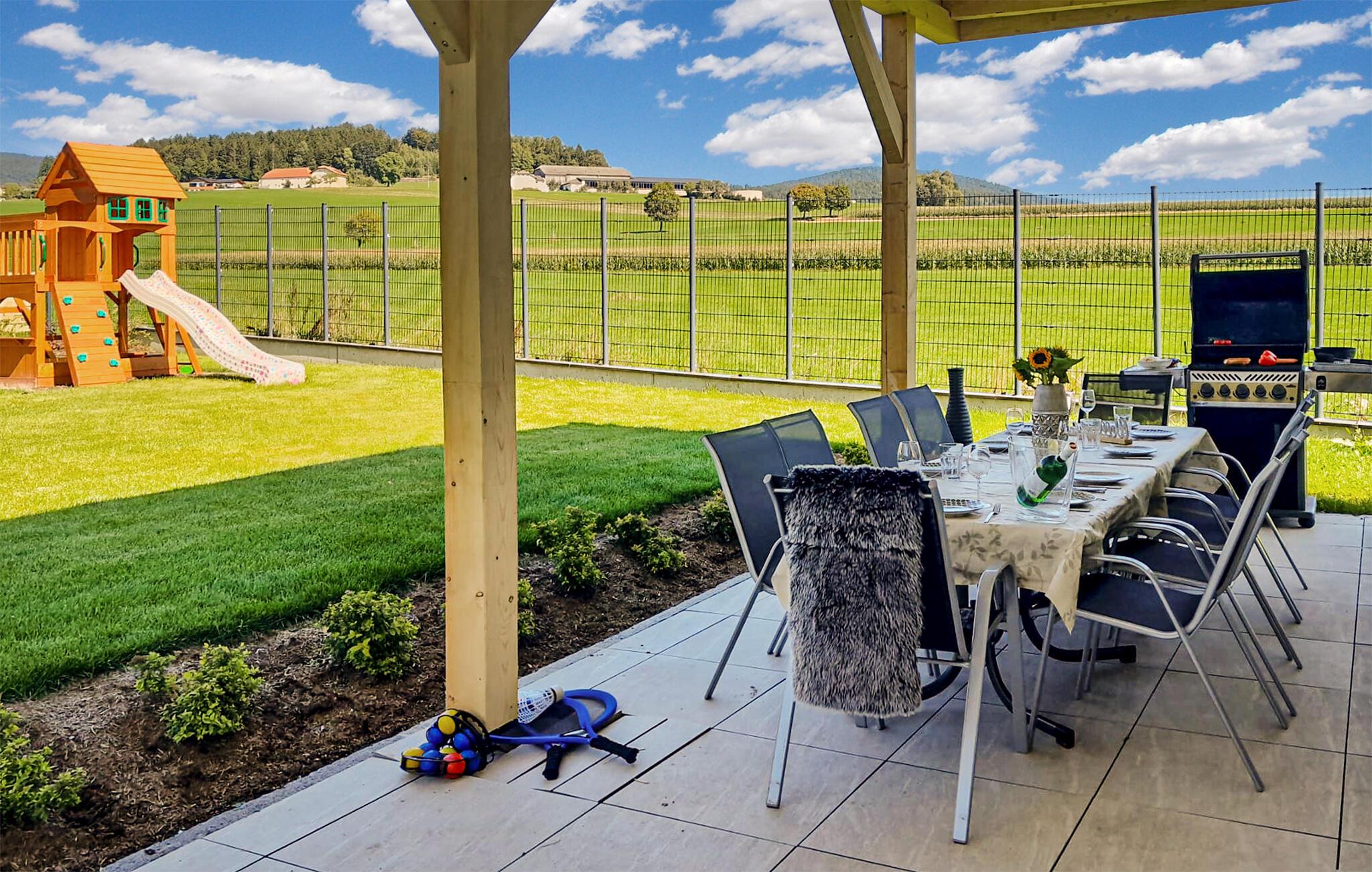 Udendørs venter jer mange dejlige timer på den overdækkede terrasse, hvor I kan dase i havemøblerne og tilberede nogle lækre retter på grillen, mens børnene boltrer sig i legeredskaberne og i legetårnet og får brændt en masse energi af.