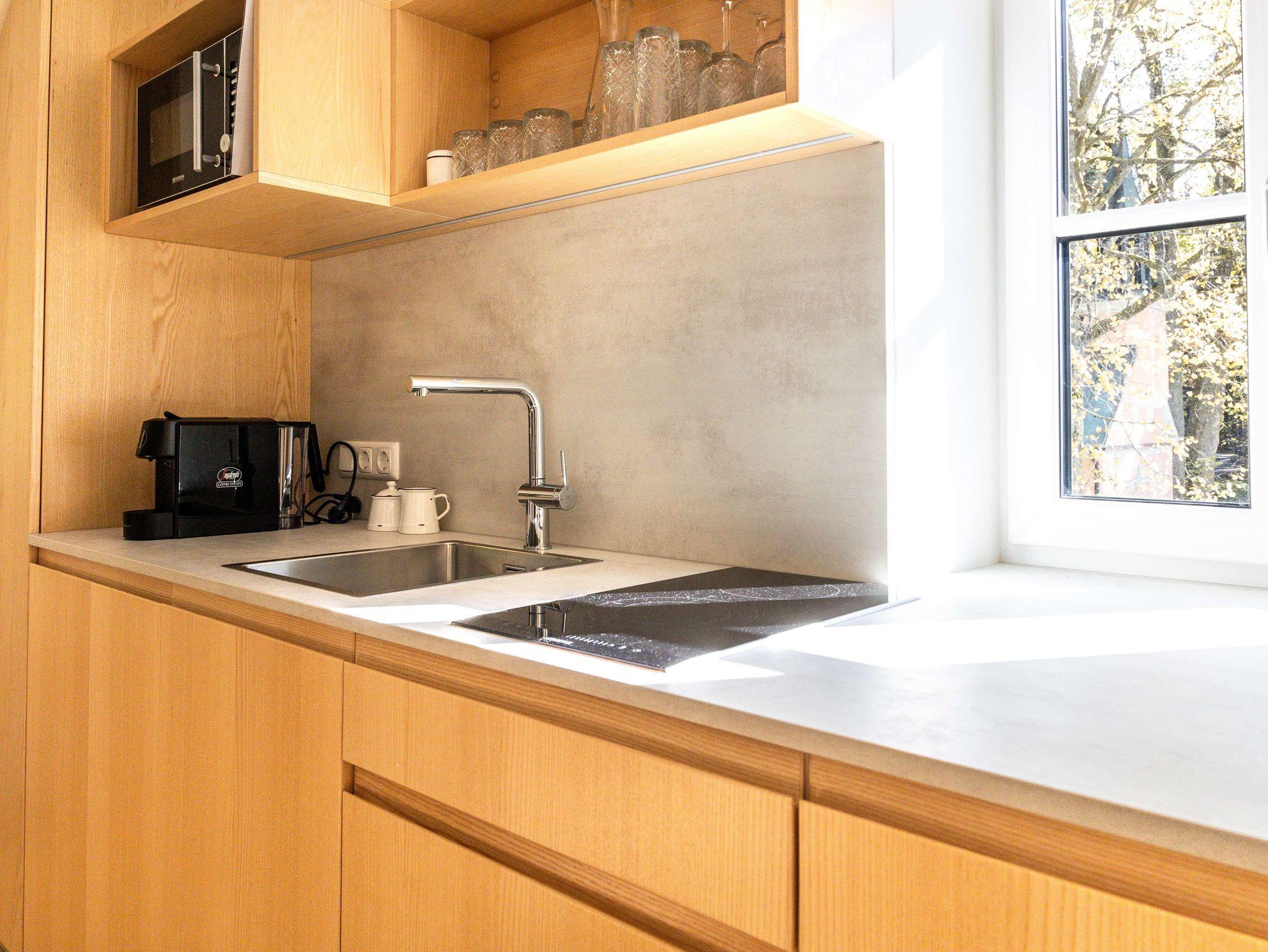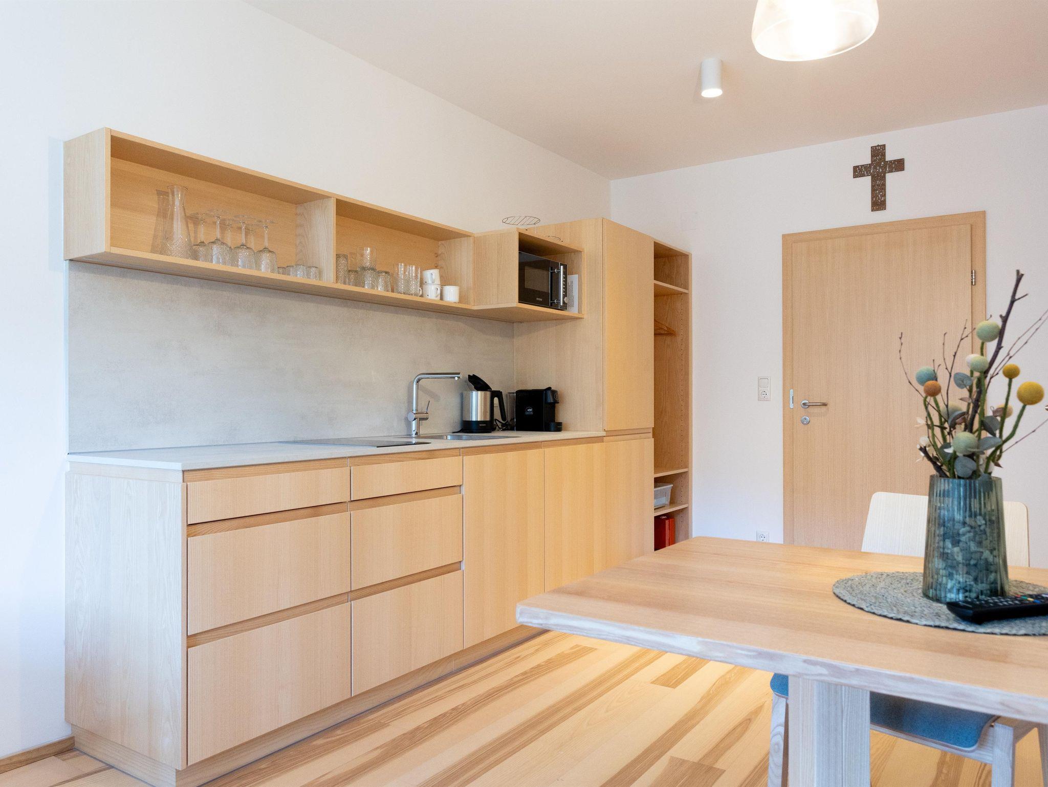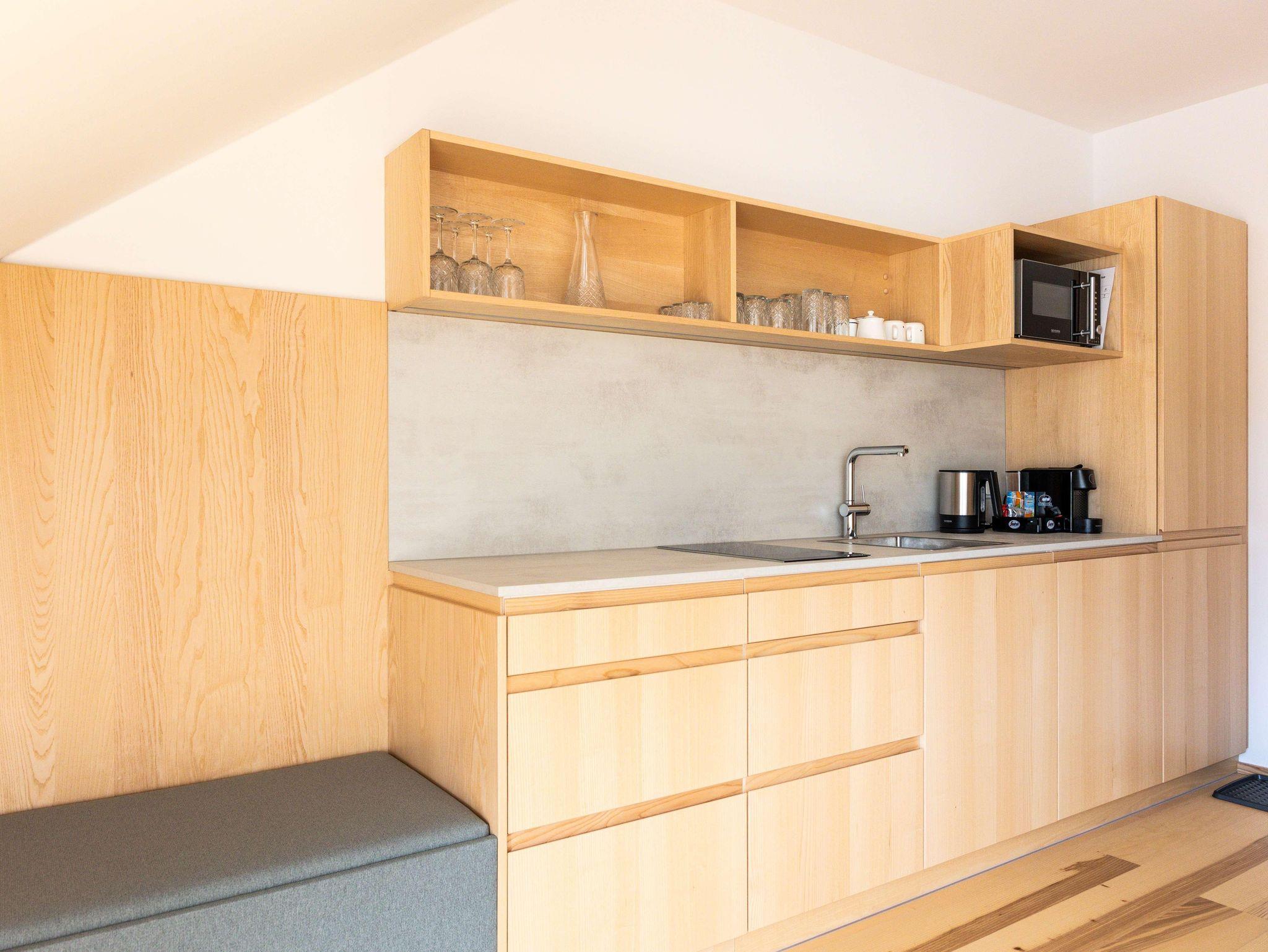 Die Ausstattung der Apartments lässt keine Wünsche offen. In den großzügigen Küchen kannst du dich bequem selbst versorgen, und im Vorraum findest du hausgemachte Gerichte in Kühlschränken, die du in deinem Apartment erwärmen kannst. Außerdem findest du im Kühlschrank in den Appartements einige Erfrischungen, die bereits für dich vorbereitet wurden!