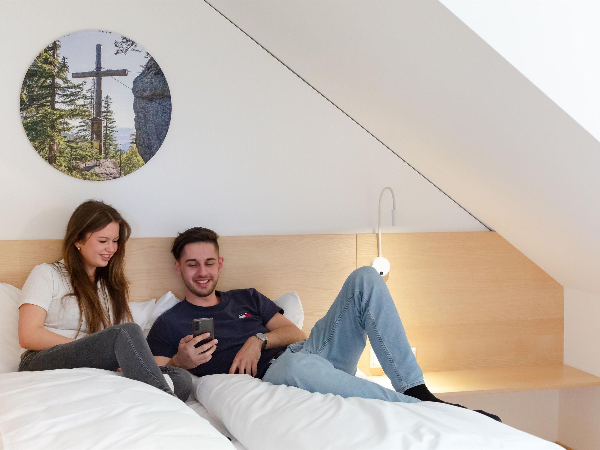 Das erst kürzlich eröffnete Forsthaus bietet dir Ruhe und Komfort in einer idyllischen Berglandschaft. Es ist ideal für Familien, Paare und Freunde, die Entspannung und Abenteuer suchen. Das Haus verfügt über 7 gemütliche Apartments. Vier davon sind mit komfortablen Doppelbetten ausgestattet, während zwei Familienapartments je 2 Schlafzimmer mit Doppelbetten haben. Zusätzlich gibt es ein barrierefreies Apartment.