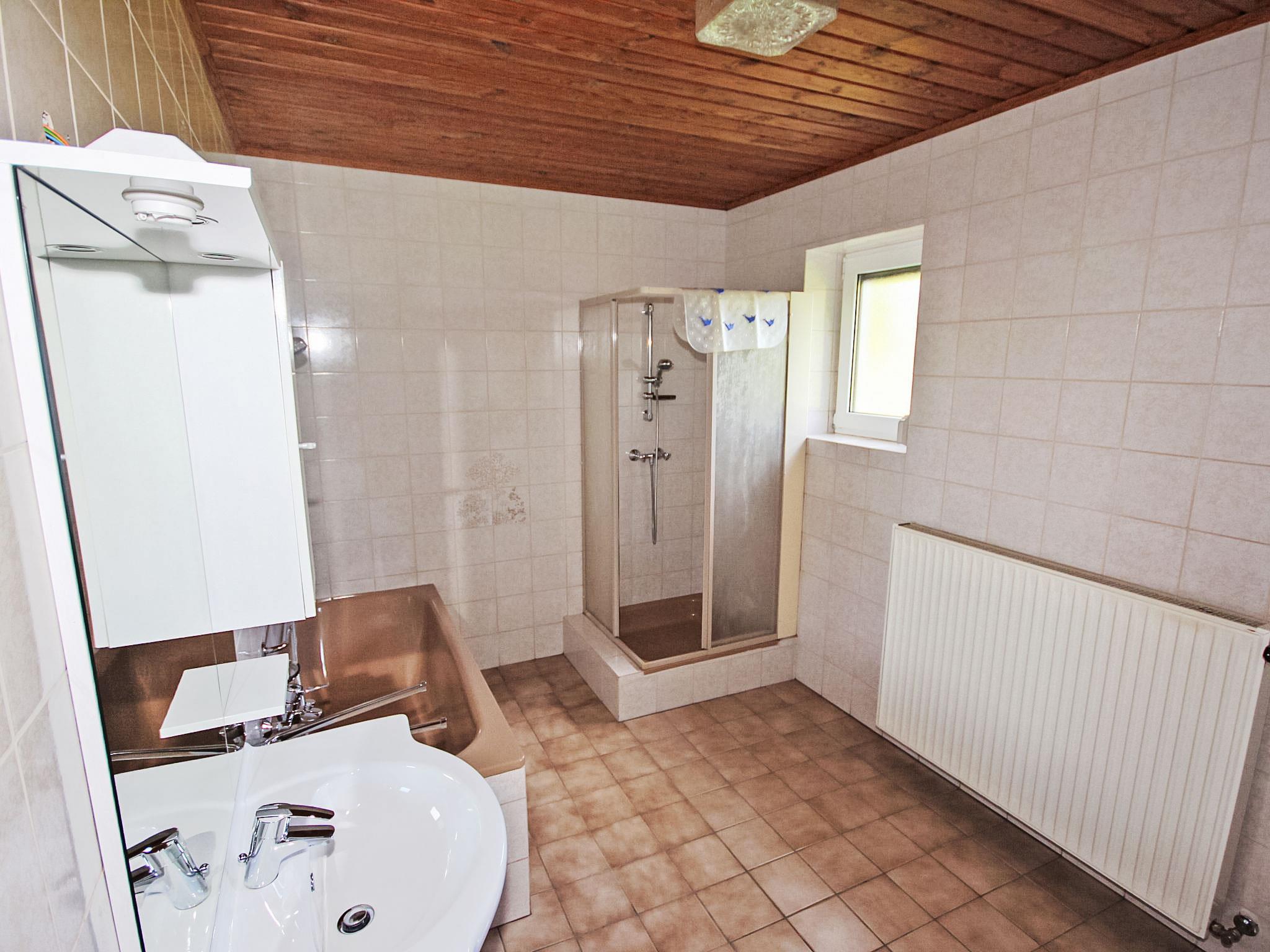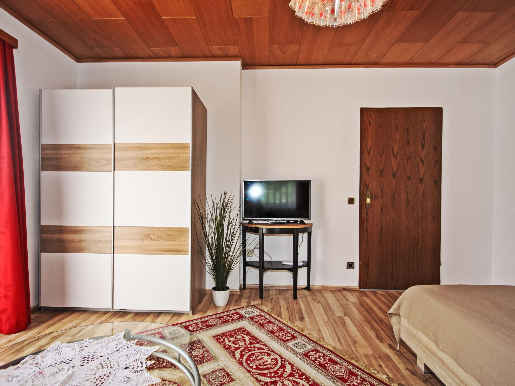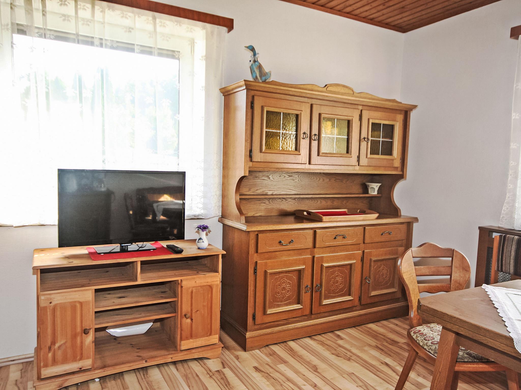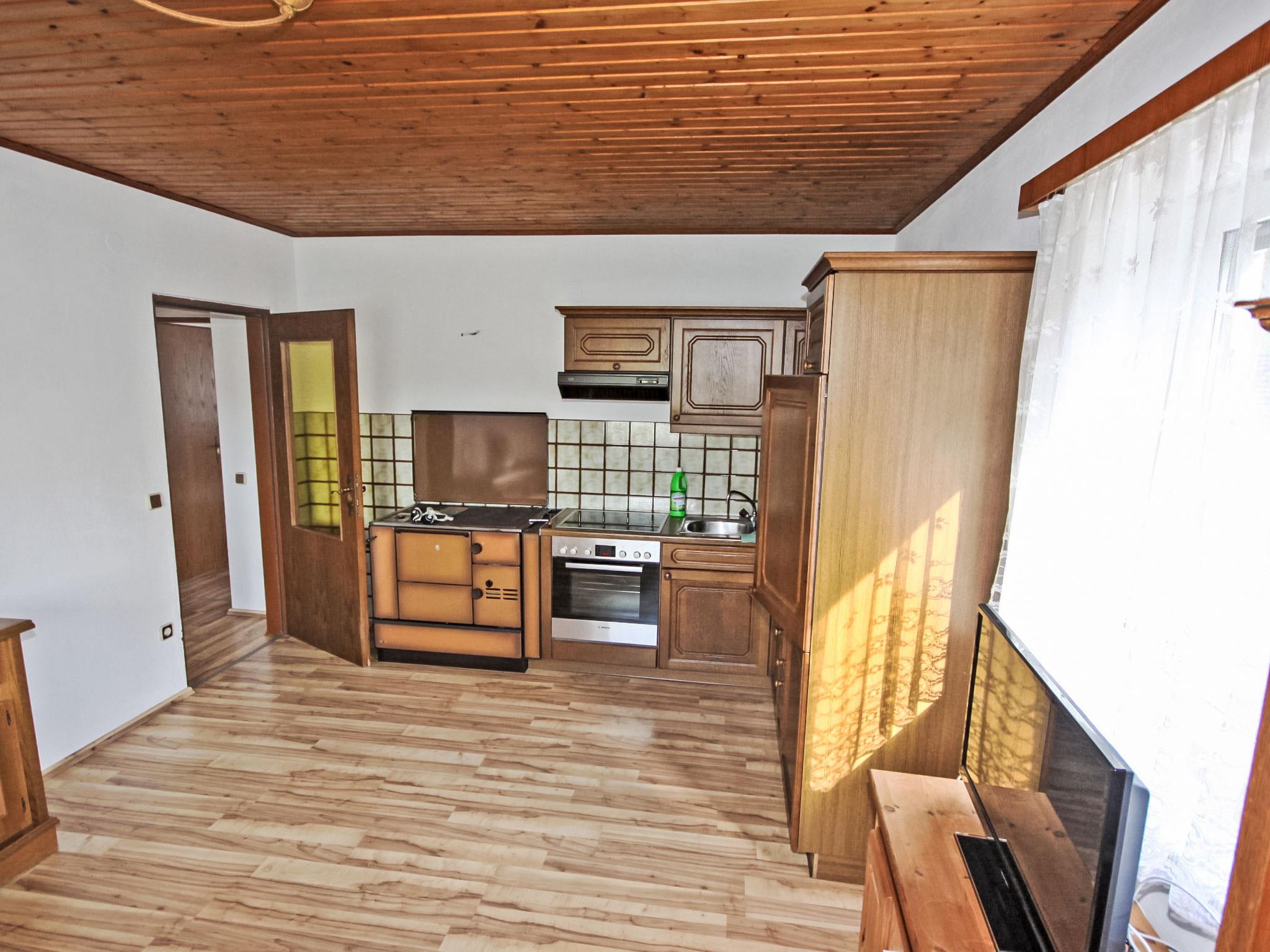 3-room house 90 m2. Spacious and bright, practical and cosy furnishings: entrance hall. 1 double bedroom. 1 room with 1 double sofabed, 1 double bed and cable TV (flat screen). Exit to the balcony. Large kitchen-/living room (oven, dishwasher, 4 ceramic glass hob hotplates, microwave, electric coffee machine) with dining nook and satellite TV (flat screen), wood-burning stove. Bath/shower, bidet, sep. WC. Electric heating, wood heating. Large balcony 11 m2, porch. Balcony furniture, box-room. Beautiful view of the countryside. Facilities: washing machine, children's high chair. Internet (WiFi, free). Please note: suitable for families. Non-smokers only. Smoke alarm, fire extinguisher.