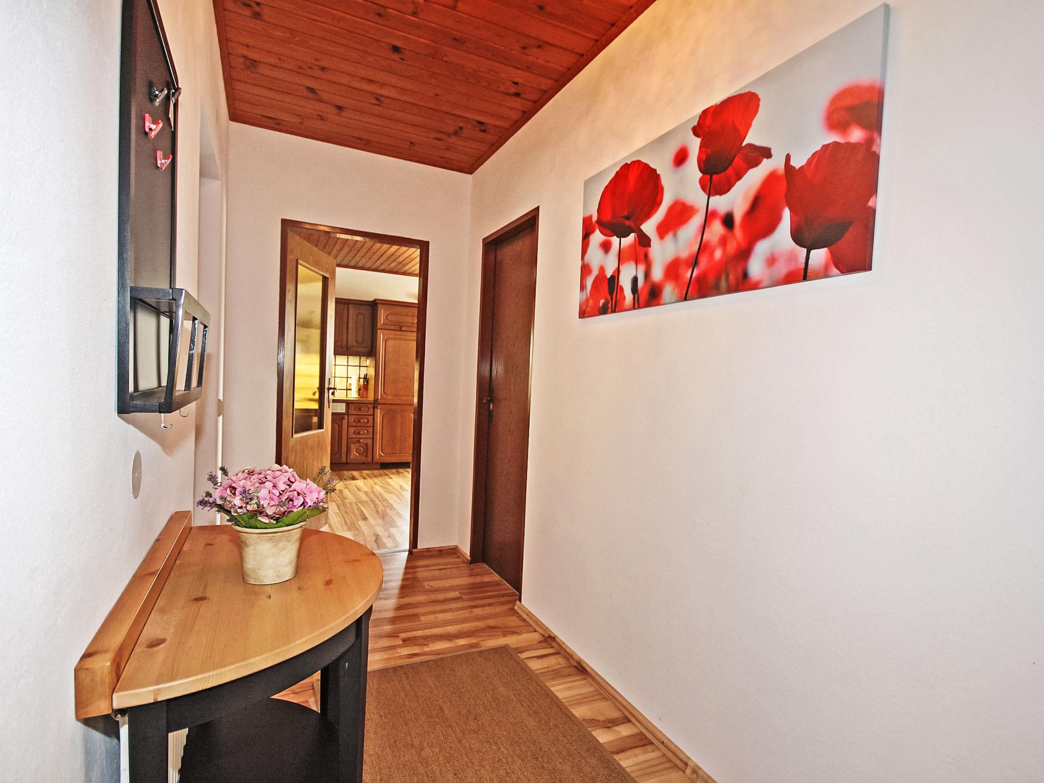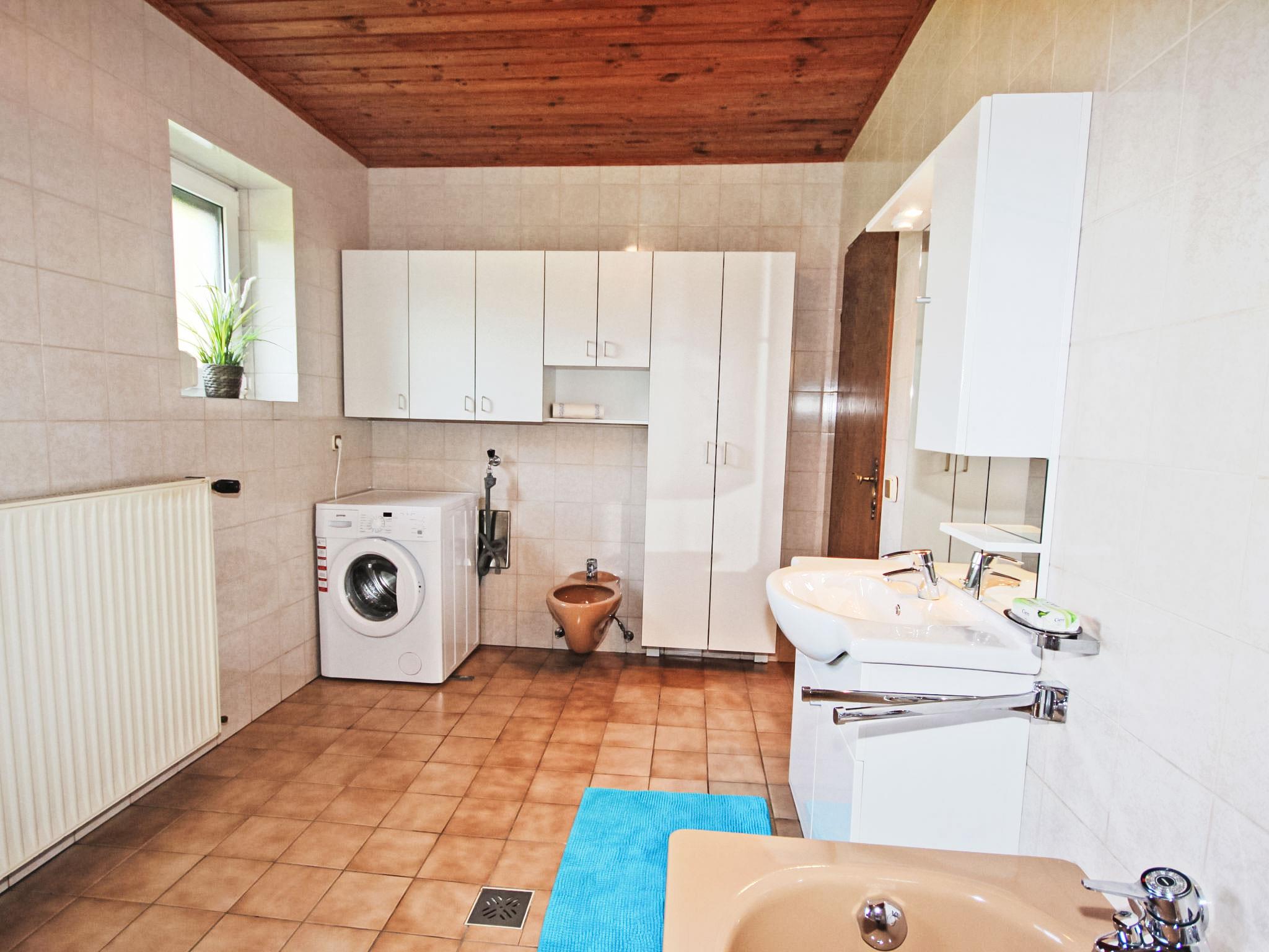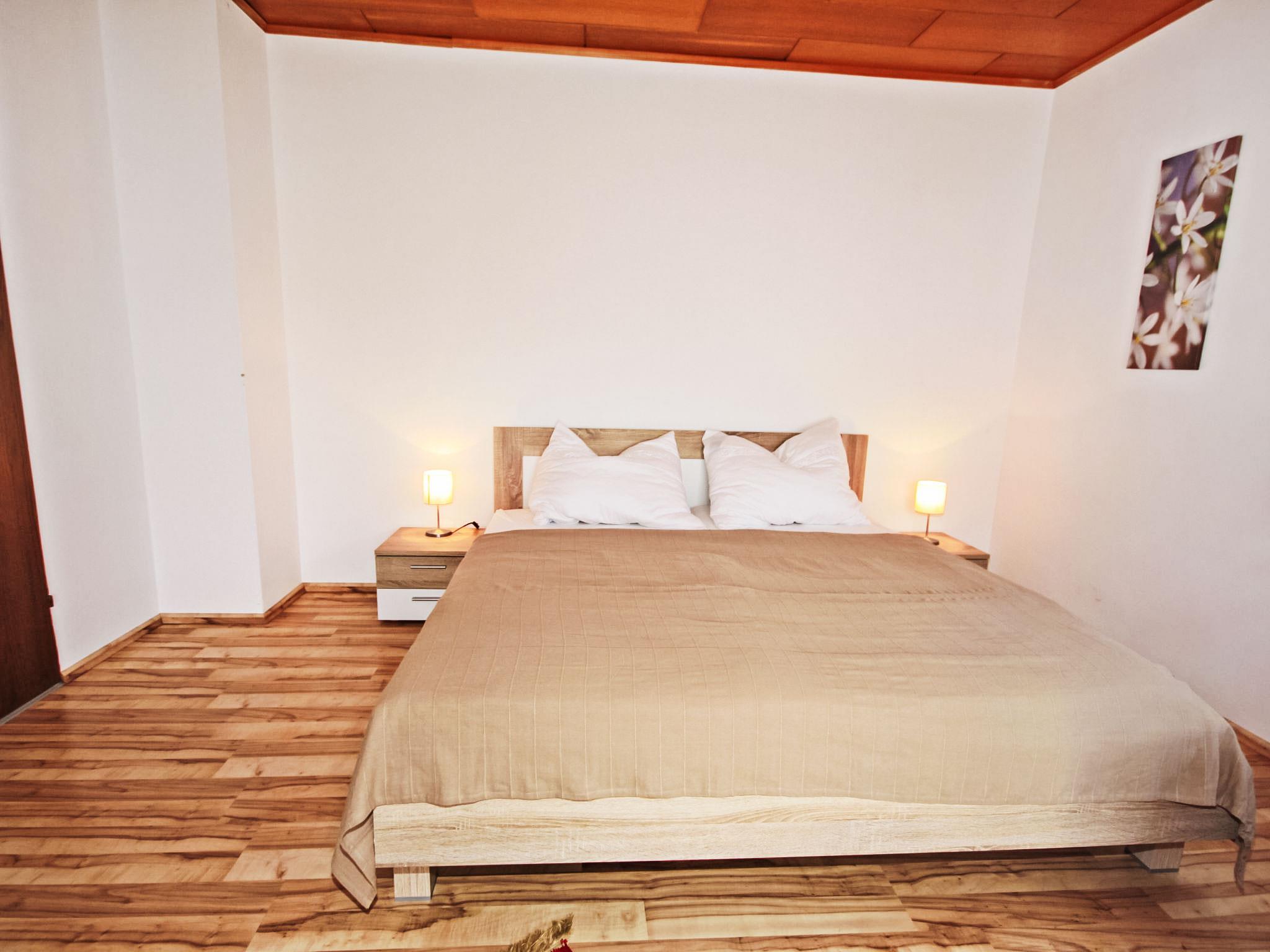 3-room house 90 m2. Spacious and bright, practical and cosy furnishings: entrance hall. 1 double bedroom. 1 room with 1 double sofabed, 1 double bed and cable TV (flat screen). Exit to the balcony. Large kitchen-/living room (oven, dishwasher, 4 ceramic glass hob hotplates, microwave, electric coffee machine) with dining nook and satellite TV (flat screen), wood-burning stove. Bath/shower, bidet, sep. WC. Electric heating, wood heating. Large balcony 11 m2, porch. Balcony furniture, box-room. Beautiful view of the countryside. Facilities: washing machine, children's high chair. Internet (WiFi, free). Please note: suitable for families. Non-smokers only. Smoke alarm, fire extinguisher.
