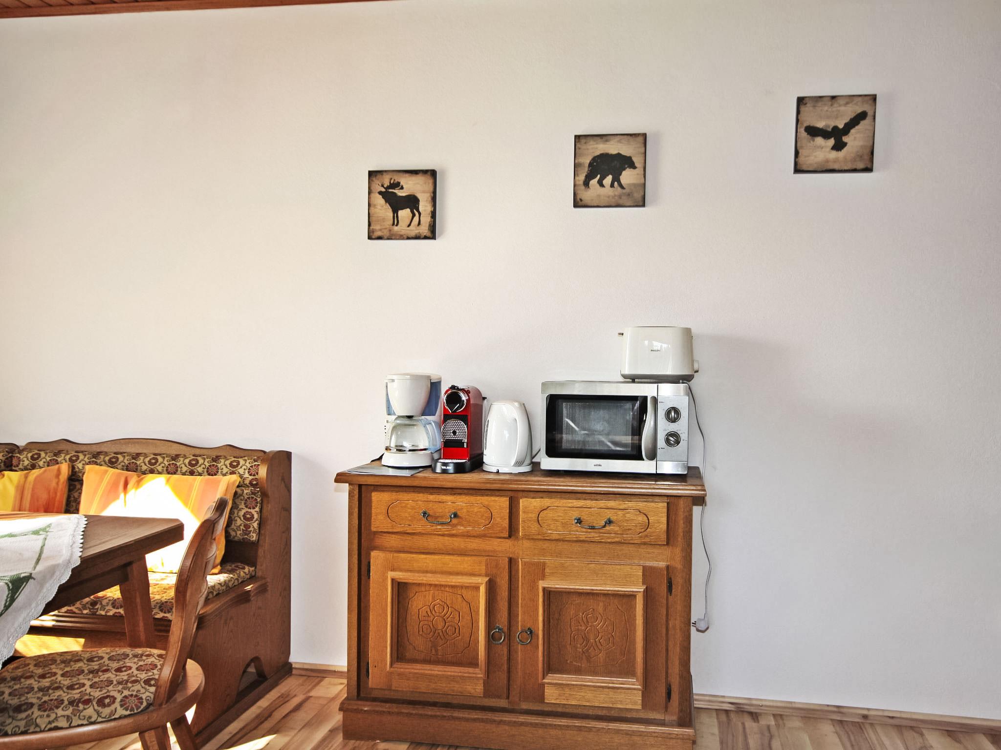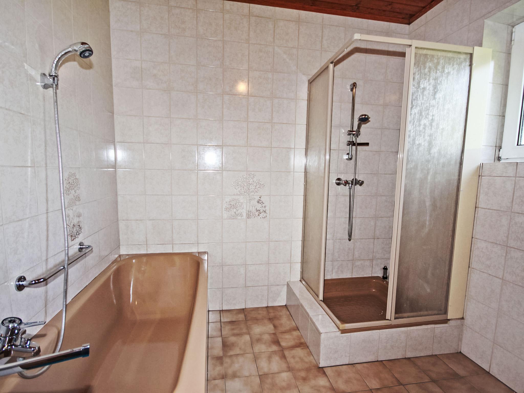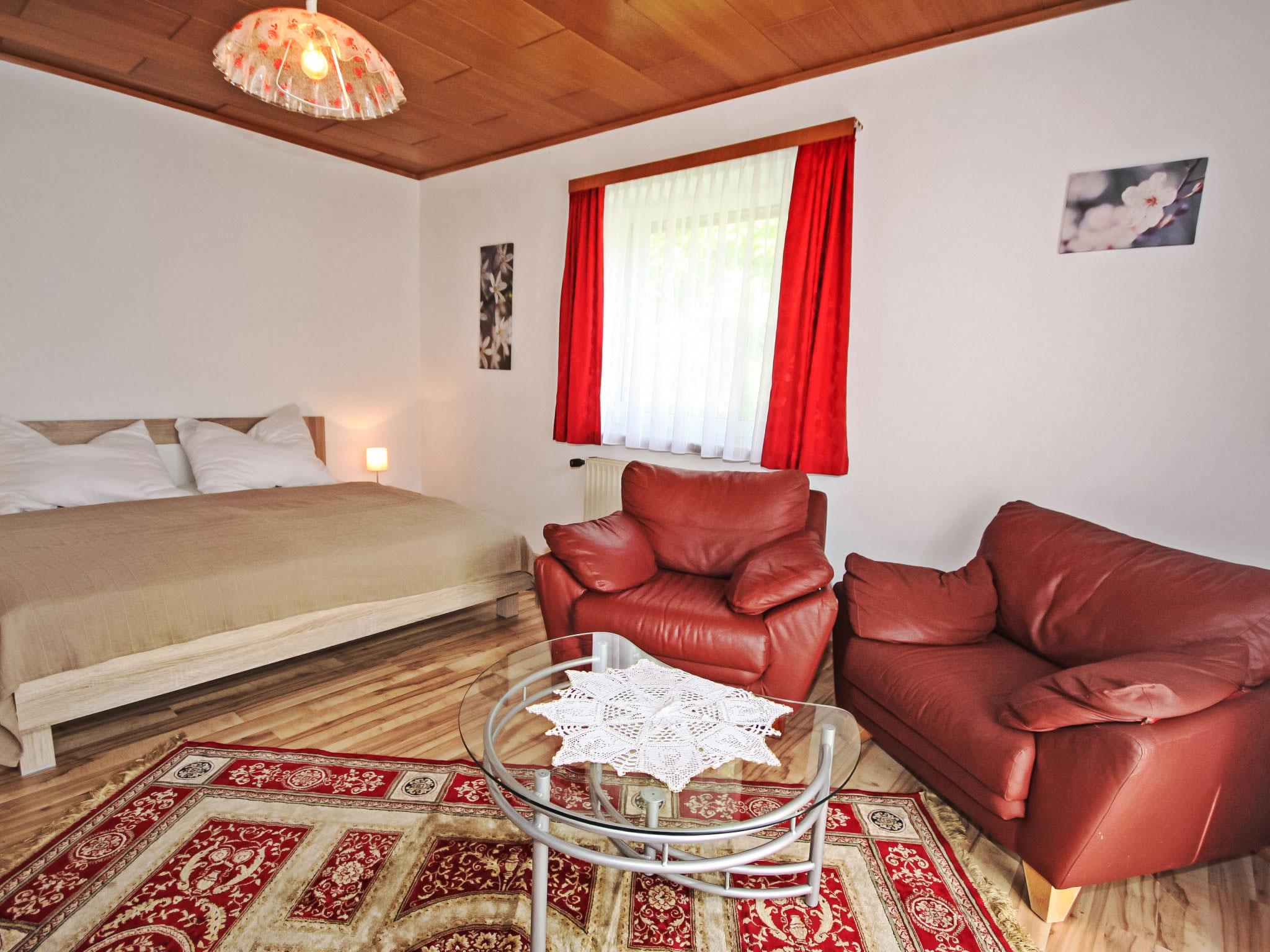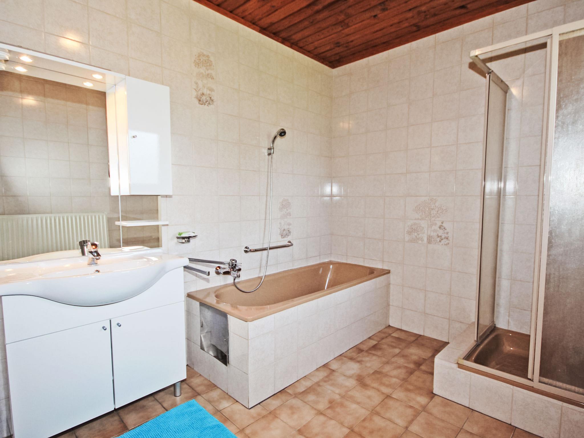 3-room house 90 m2. Spacious and bright, practical and cosy furnishings: entrance hall. 1 double bedroom. 1 room with 1 double sofabed, 1 double bed and cable TV (flat screen). Exit to the balcony. Large kitchen-/living room (oven, dishwasher, 4 ceramic glass hob hotplates, microwave, electric coffee machine) with dining nook and satellite TV (flat screen), wood-burning stove. Bath/shower, bidet, sep. WC. Electric heating, wood heating. Large balcony 11 m2, porch. Balcony furniture, box-room. Beautiful view of the countryside. Facilities: washing machine, children's high chair. Internet (WiFi, free). Please note: suitable for families. Non-smokers only. Smoke alarm, fire extinguisher.