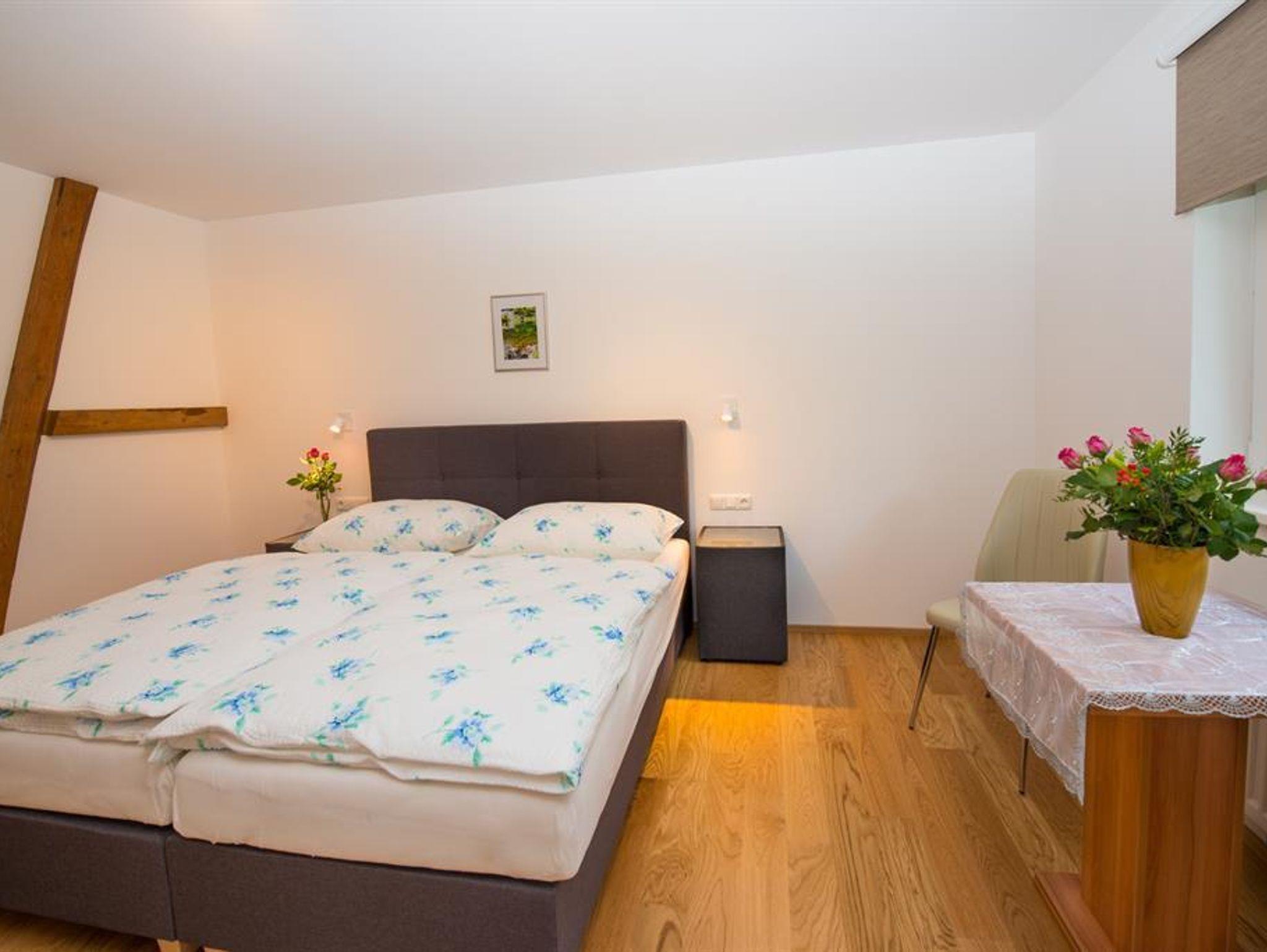 liegt das herrliche Wohnzimmer.Die Schlafzimmer befinden sich im Obergeschoß,das Badezimmer, sowie das WC grenzen an die beiden Schlafzimmer.
