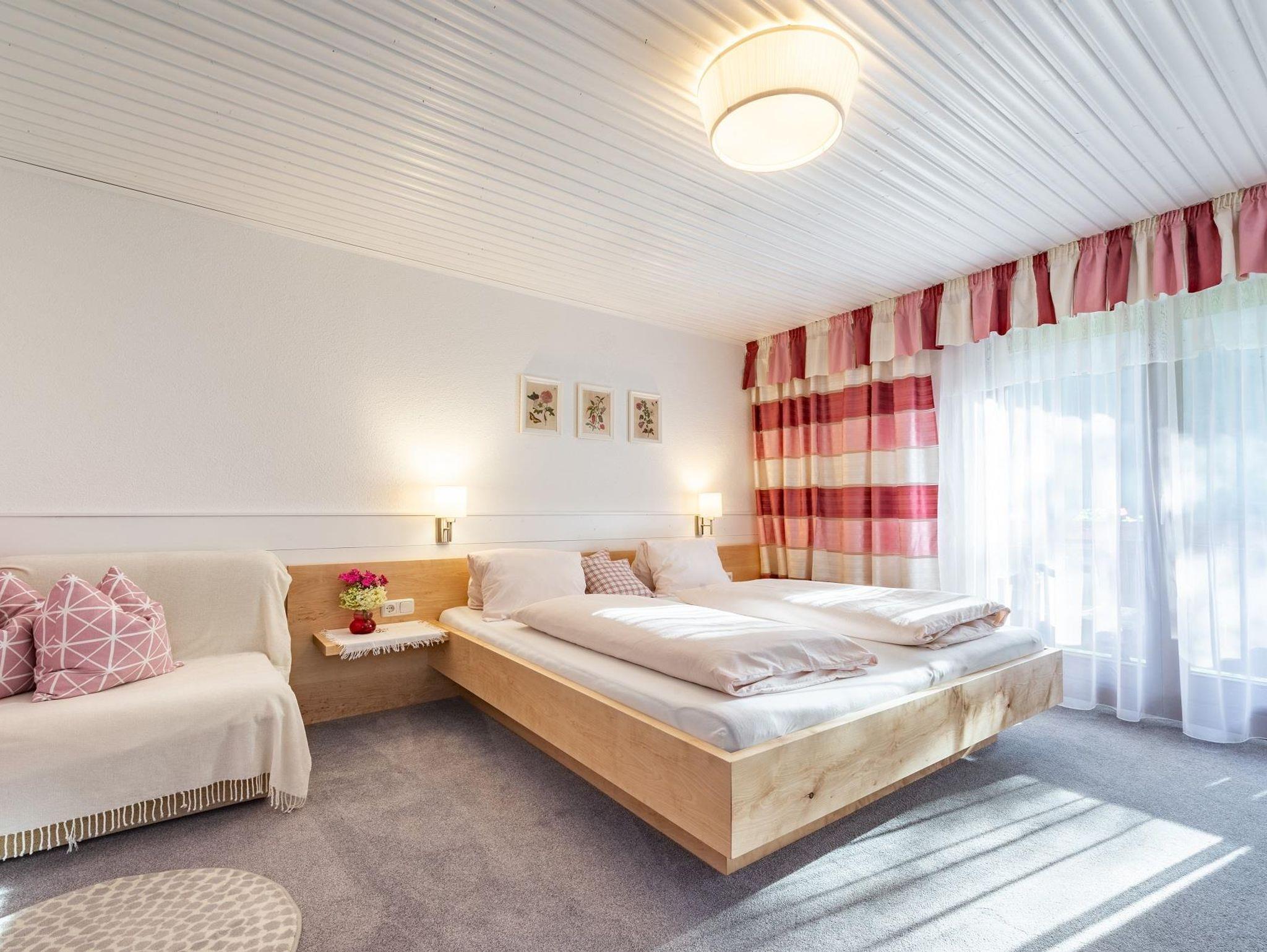 Das Erikas ist eine gemütliche Familienwohnung mit * voll ausgestatteter Wohnküche * 1 Eltern- (Doppelbett u. ausziehbare Couch) & 1 Kinderzimmer (Einzelbett) * Dusche/WC * Balkon mit Bergblick * Kabel-TV in Küche & Schlafzimmer * WLAN/Fön/Radio