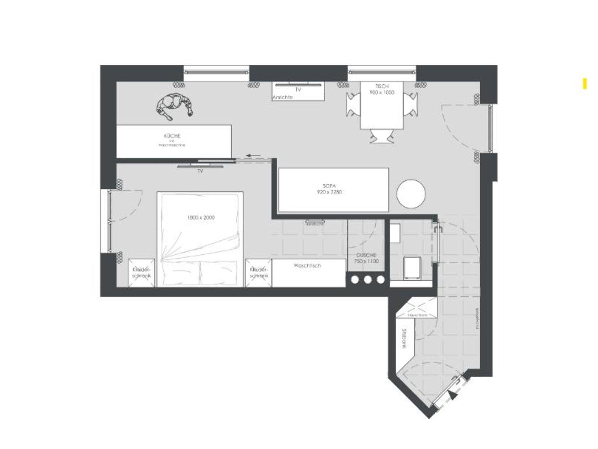 Das Apartment Waage im ersten Stock bietet auf 36 m² Platz für bis zu 4 Personen. Es verfügt über ein Schlafzimmer mit Doppelbett sowie eine Schlafcouch, die ideal für zwei Kinder geeignet ist. Das Schlafzimmer ist mit einem eigenen Badezimmer mit Dusche und WC ausgestattet – für besonderen Komfort und Privatsphäre.