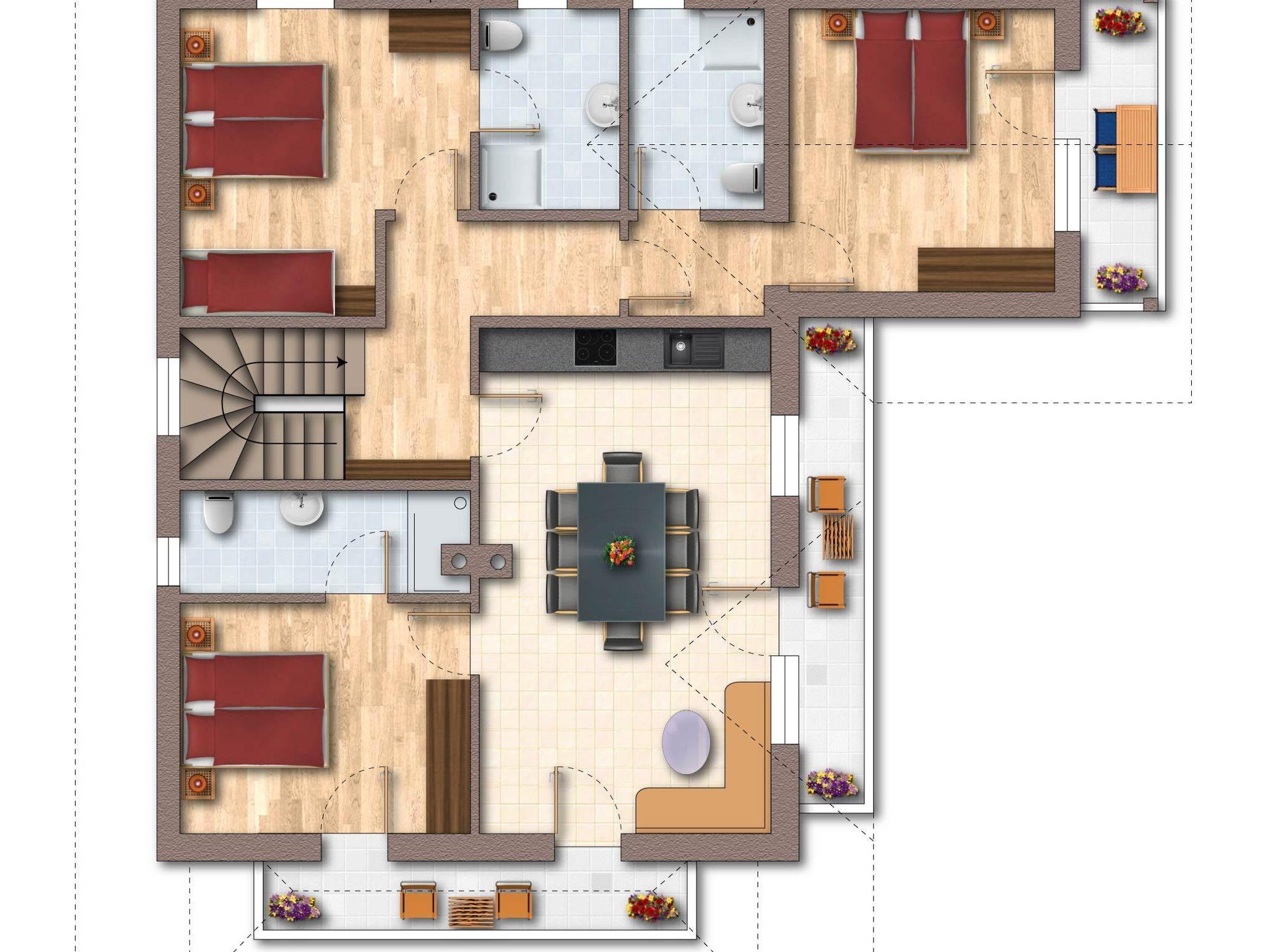 • Zwei Doppelzimmer und ein Dreibettzimmer