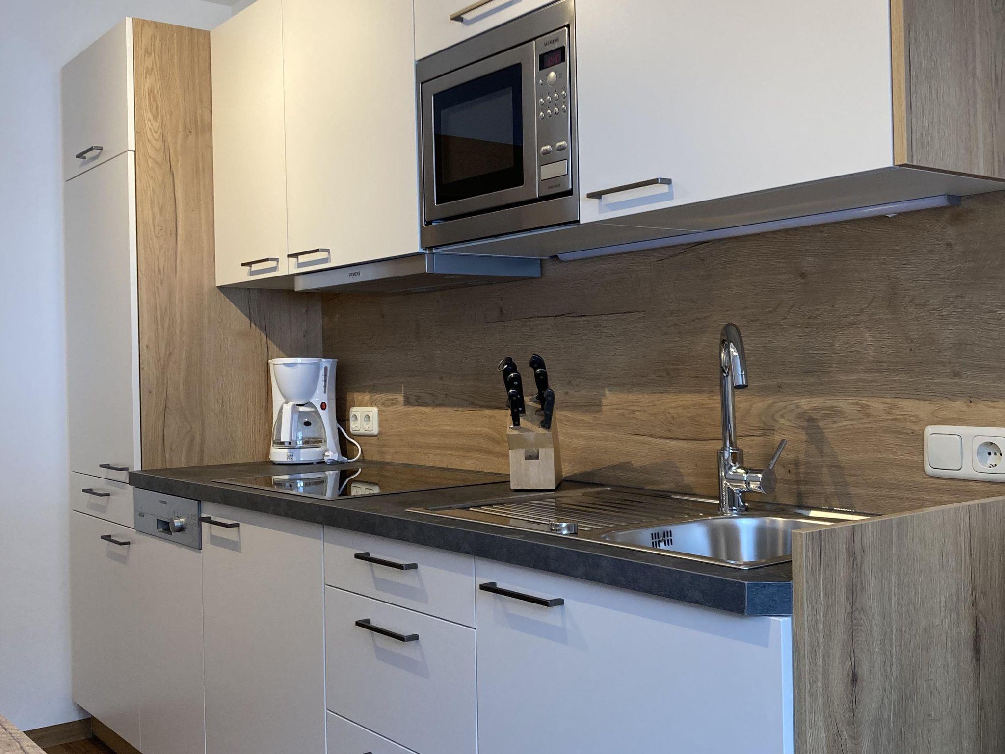 Appartement West mit 60m² , 2 Schlafräume jeweils Dusche/WC, große Wohnküche und Balkon süd und westseitig.
