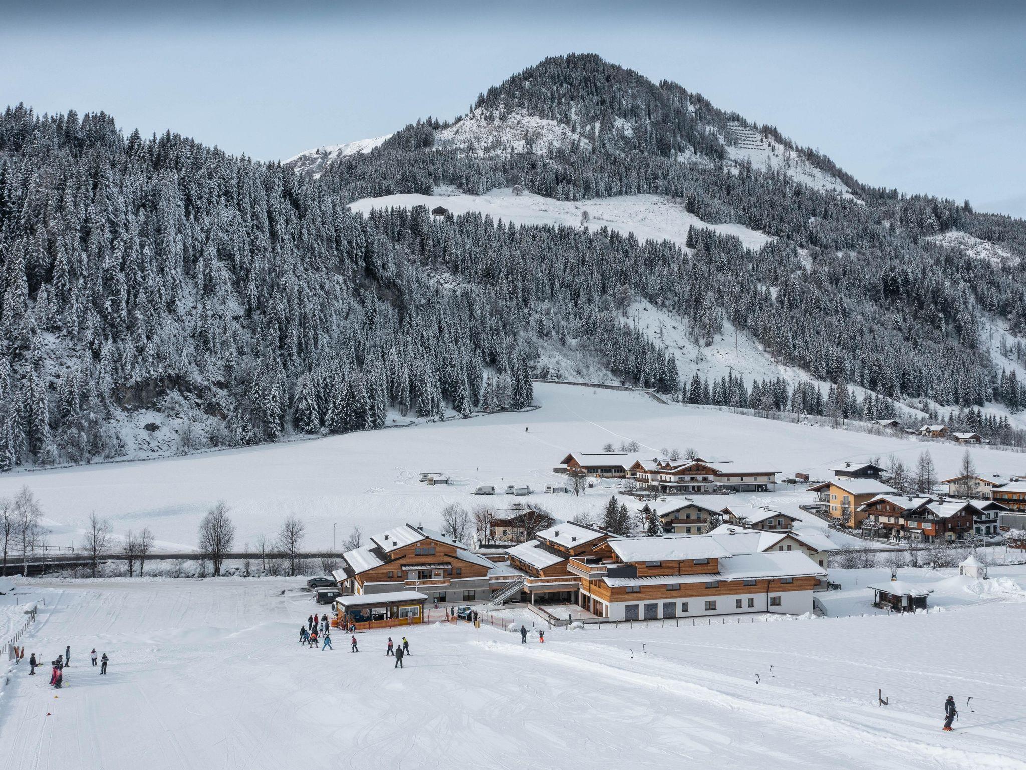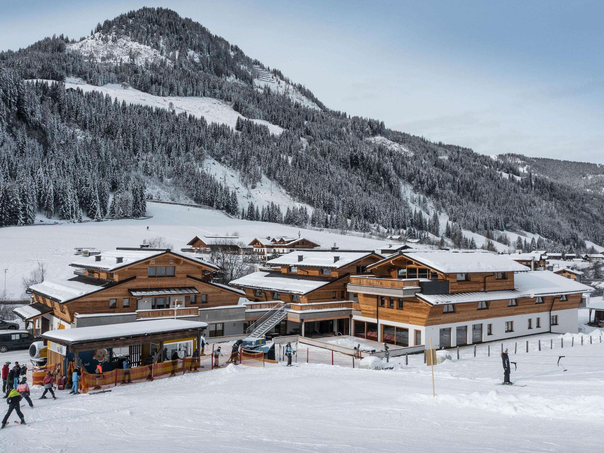 Im Winter, direkt am Übungslift und dem Anfängerhang. Dieser Lift ist ein kurzer Zubringerlift zur Champion Shuttle“ - der Einstiegsbahn in das Skigebiet Shuttleberg Flachauwinkl-Kleinarl und Zauchensee. Mit der Gondelbahn Panorama Link verbunden mit Snowspace Flachau-Wagrain-St. Johann Alpendorf. Also perfektes Ski in - Ski out zum größten zusammenhängenden Skigebiet in Ski Amadé.