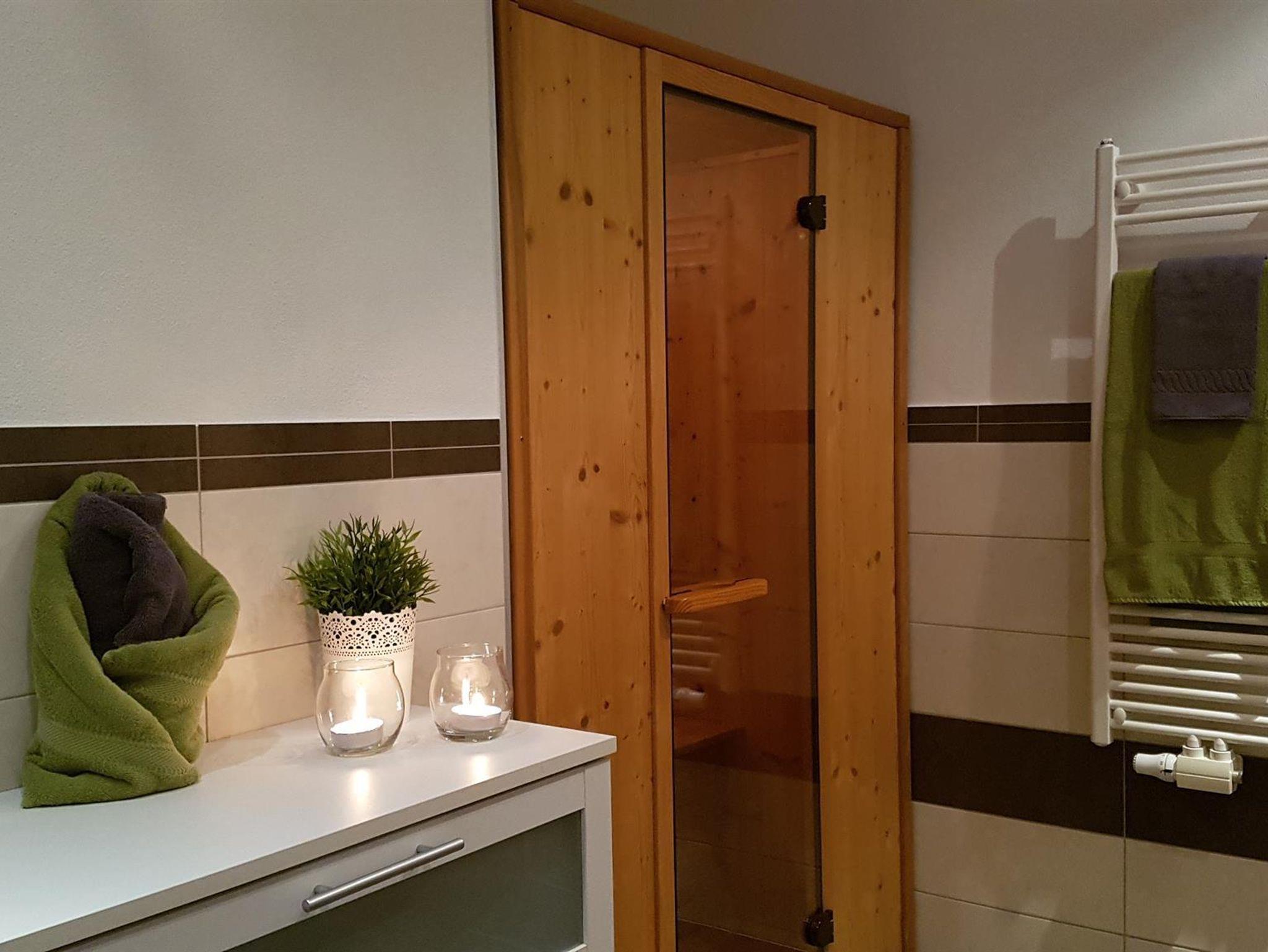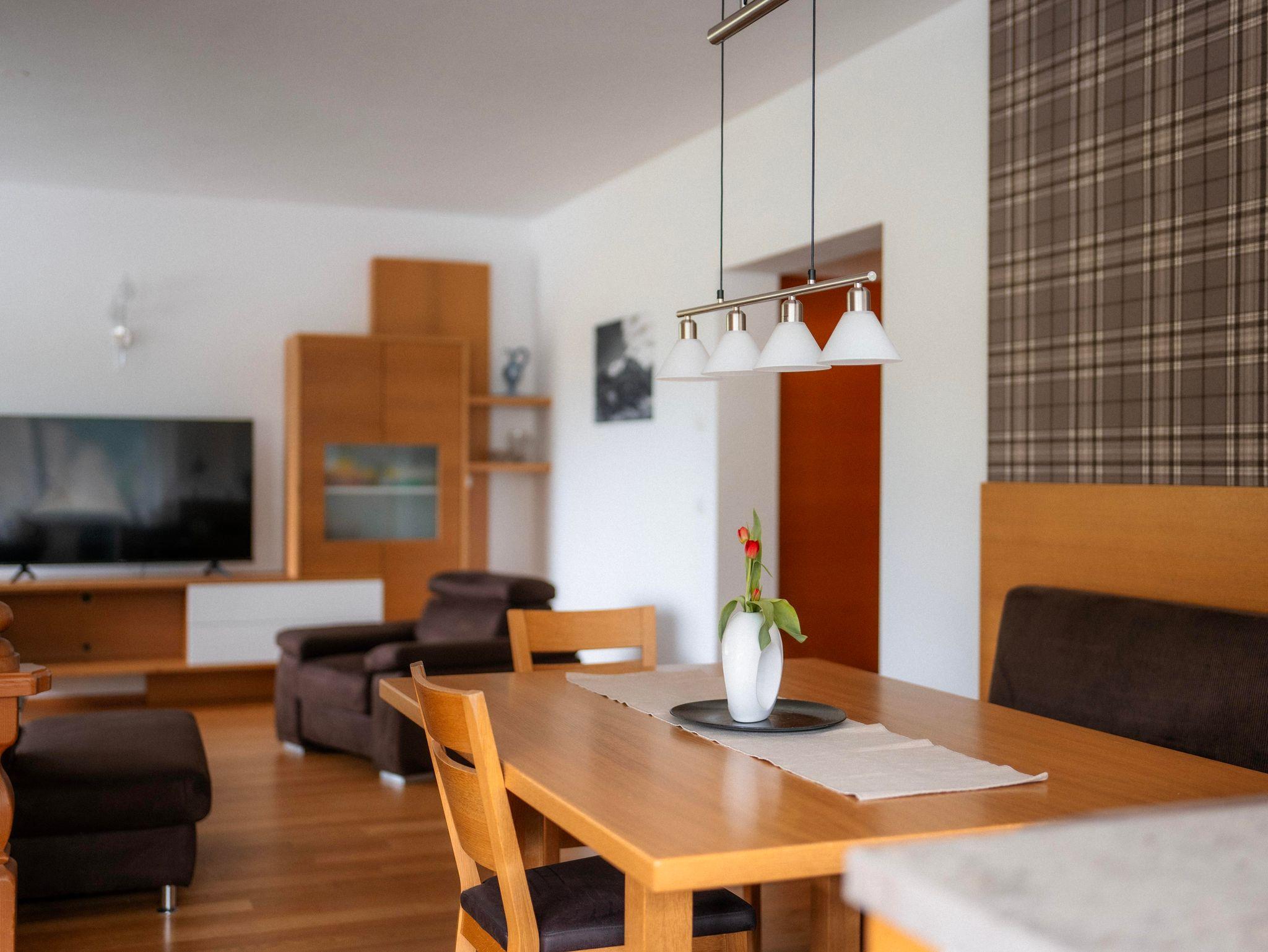 120m² Appartement mit komplett ausgestatteter Küche, Wohnbereich, 1x Doppelzimmer, 1x Dreibettzimmer, 1x Vierbettzimmer (Doppel- u. Stockbett), zwei DU/WC, drittes WC separat, appartementeigene Infrarotkabine, Vorraum, Balkon, Kabel-TV und Internet