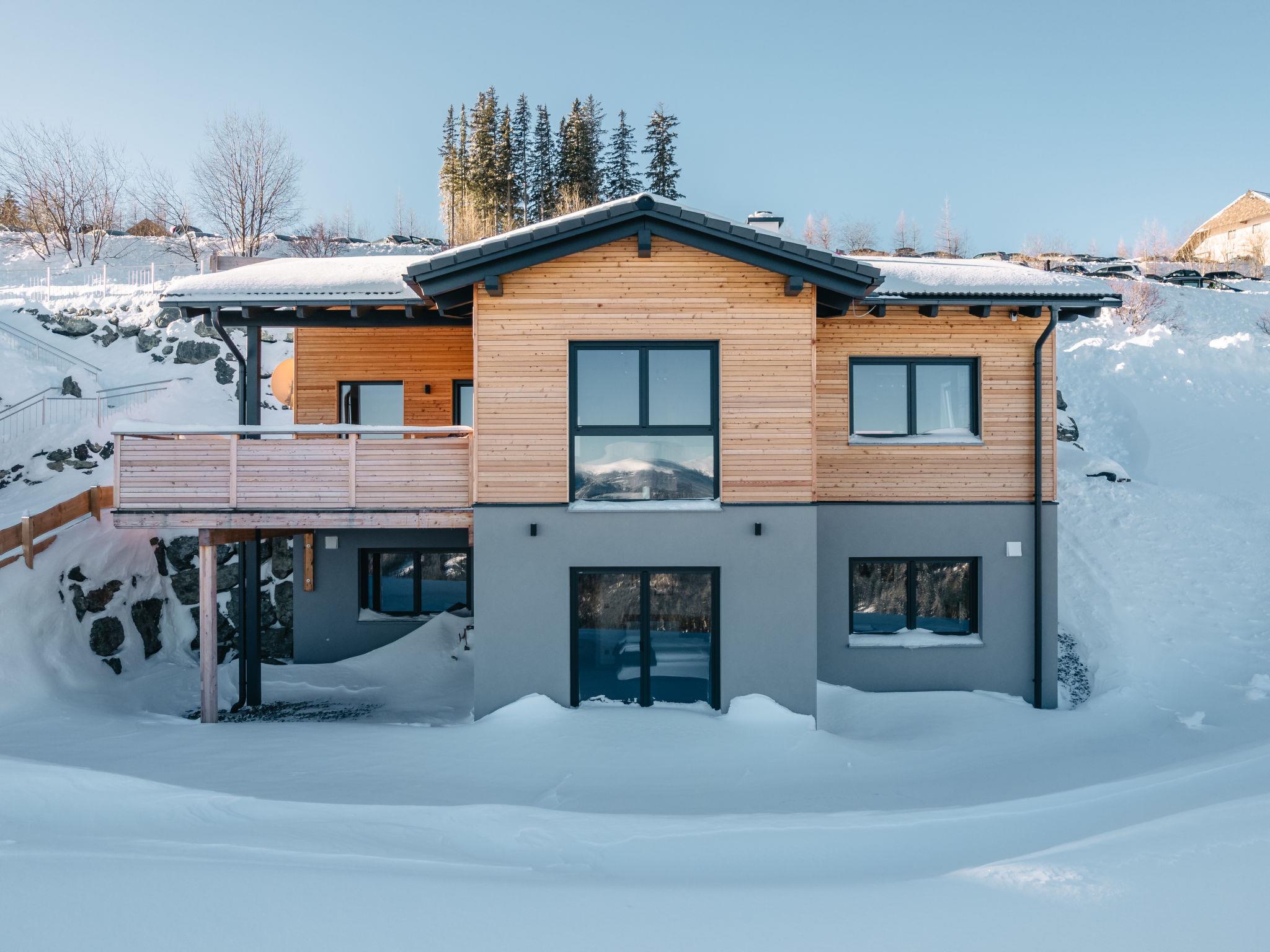 Large, modern, luxurious chalet "Mountain Lodge - Klippitztörl", 2 storeys, built in 2022, surrounded by meadows. In the district of Kliening, on a slope, 50 m from the skiing area, in a cul-de-sac. Private: garden (not fenced). Fireplace. In the house: with TV, WiFi, sauna, sun terrace, storage room for skis, central heating system, washing machine, tumble dryer. Bumpy motor access to the house (1 km via unmade road). In Winter: please take snow chains. Parking (for 6 cars) at the house. E-charging station. Grocery 15 km, restaurant 800 m, bus stop "Bad St. Leonhard Moosweg (West)" 15.2 km, lake Längssee 35 km. Walking paths from the house 5 m, chair lift 500 m, slopes 200 m, ski rental 200 m, ski school 2 km, sled run 2 km. Nearby attractions: Sommerrodelbahn Klippitztörl 2 km, Klettergarten 2 km. Well-known lakes can easily be reached: Längssee 35 km, Klopeinersee 60 km. Hiking paths: Koralm, Saualm, Lavantaler Alpen. Please note: car recommended. In case of good snow conditions, the house is accessible on skis. Loading and unloading of baggage is possible at the holiday house. Self-service machine for food and everyday necessities in 700m. Due to the geographic location, internet access cannot be guaranteed.