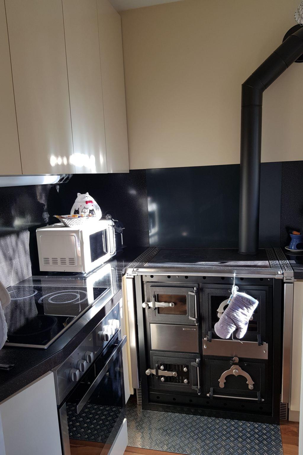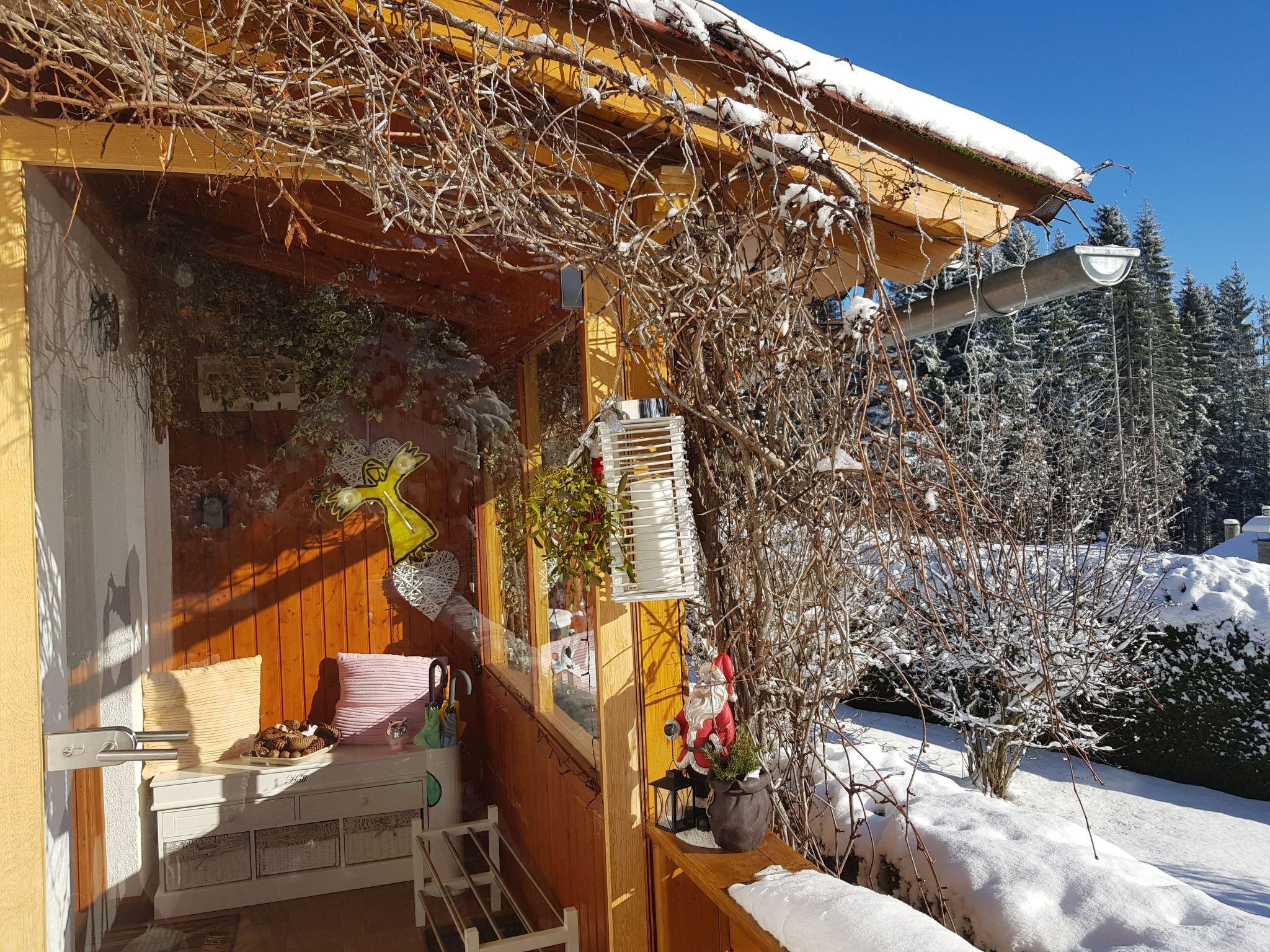 The house consists of a bedroom, a living room, a little entrance area, a pantry, a little dining corner and a fully-equipped kitchen, as well as a bathroom with a bath, washbasin and WC. The kitchen is equipped with a dishwasher, microwave, Nespresso machine, electric stove, filter coffee machine, fridge and freezer, crockery and tea towels. You can also cook with an additional hob. Sugar and salt are provided. The bedroom has a double bed and satellite TV, as well as bed linen. The bathroom consists of a bath, WC, washbasin, toilet paper, towels, bathrobes, bath towels. The hot water is heated with a bathroom boiler. Pellets heating is possible throughout. In the living room there is a Haas stove with a glass front for cosy hours, as well as a satellite TV, a leather sofa that can be pulled out for 1-2 people. The house was generally renovated in 2017. The flooring consists of laminate, with tile in the bathroom. The wood and pellets are provided by the owner.