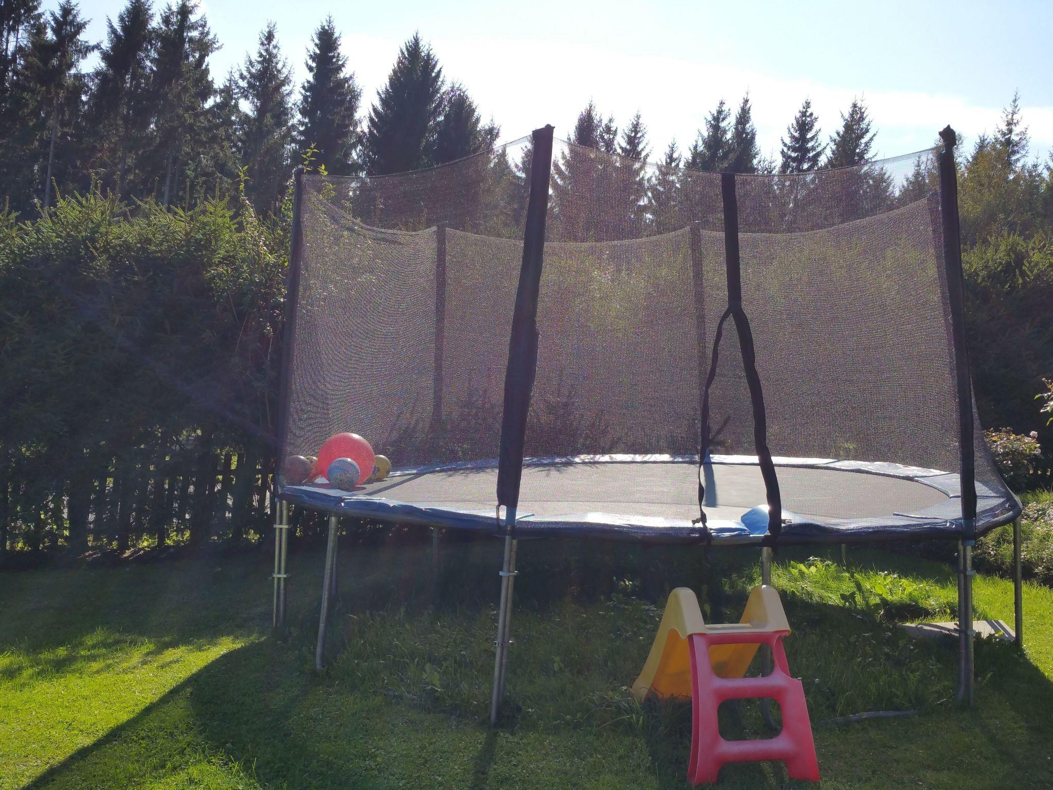 A parking space is available. The outdoor area consists of a children’s play area, sandpit, trampoline, a brick-built grill, an arbour with a big table and chairs, fire baskets. Part of the garden ca. 1500m² is available, as well as a terrace with chairs and a table, from which you can watch the sunset. Please keep dogs on the leash in the garden, as the owner himself has two dogs. The site is fully fenced.