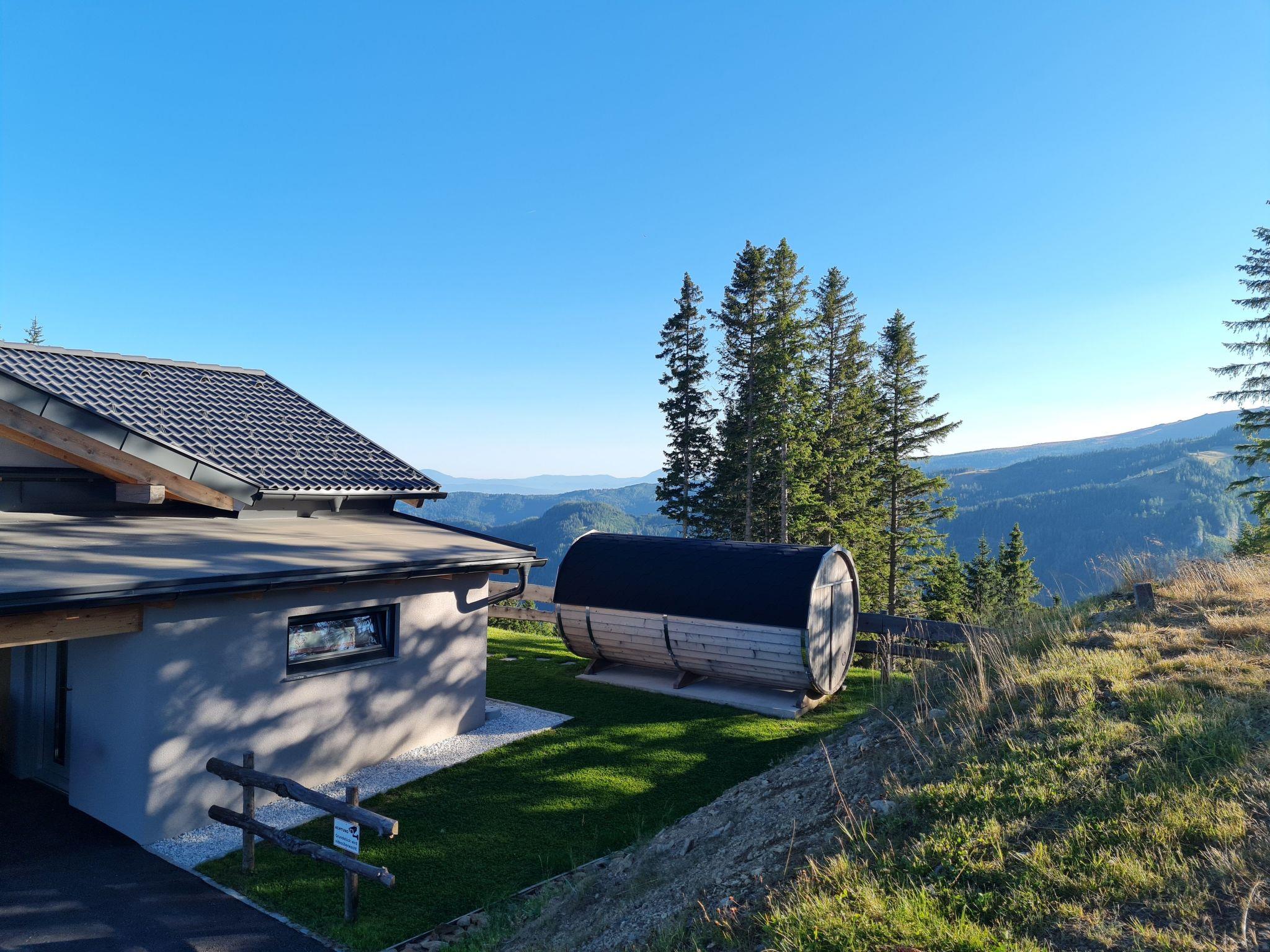 The outdoor area of the house invites you to relax and enjoy the fresh mountain air. A beautiful terrace with a picturesque garden for your exclusive use is the ideal place to sit back and enjoy the tranquillity of the surroundings. For an incomparable wellness experience, you can use the private barrel sauna or spend cosy evenings by the fire bowl.