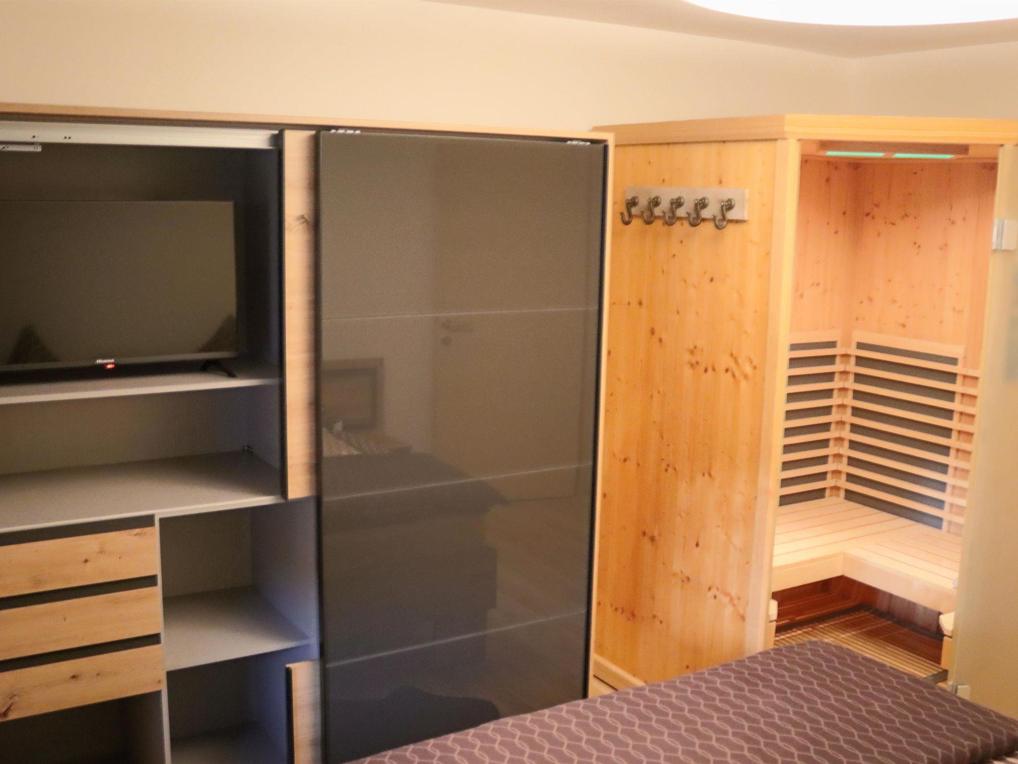 Die exklusive Ferienwohnung mit Infrarotkabine ist 110m² groß und verfügt über 2 Schlafzimmer mit Flachbild TV, kostenfreies WLAN, Infrarotkabine, Wohnzimmer mit Schlafcouch und Flachbild TV, Esszimmer, eine komplett ausgestattete Küche mit Geschirrspüler und Mikrowelle, 1 Badezimmer mit Dusche und Badewanne, WC und eine Waschmaschine. Alle Fenster sind mit Außenrollos und Fliegengitter ausgestattet.