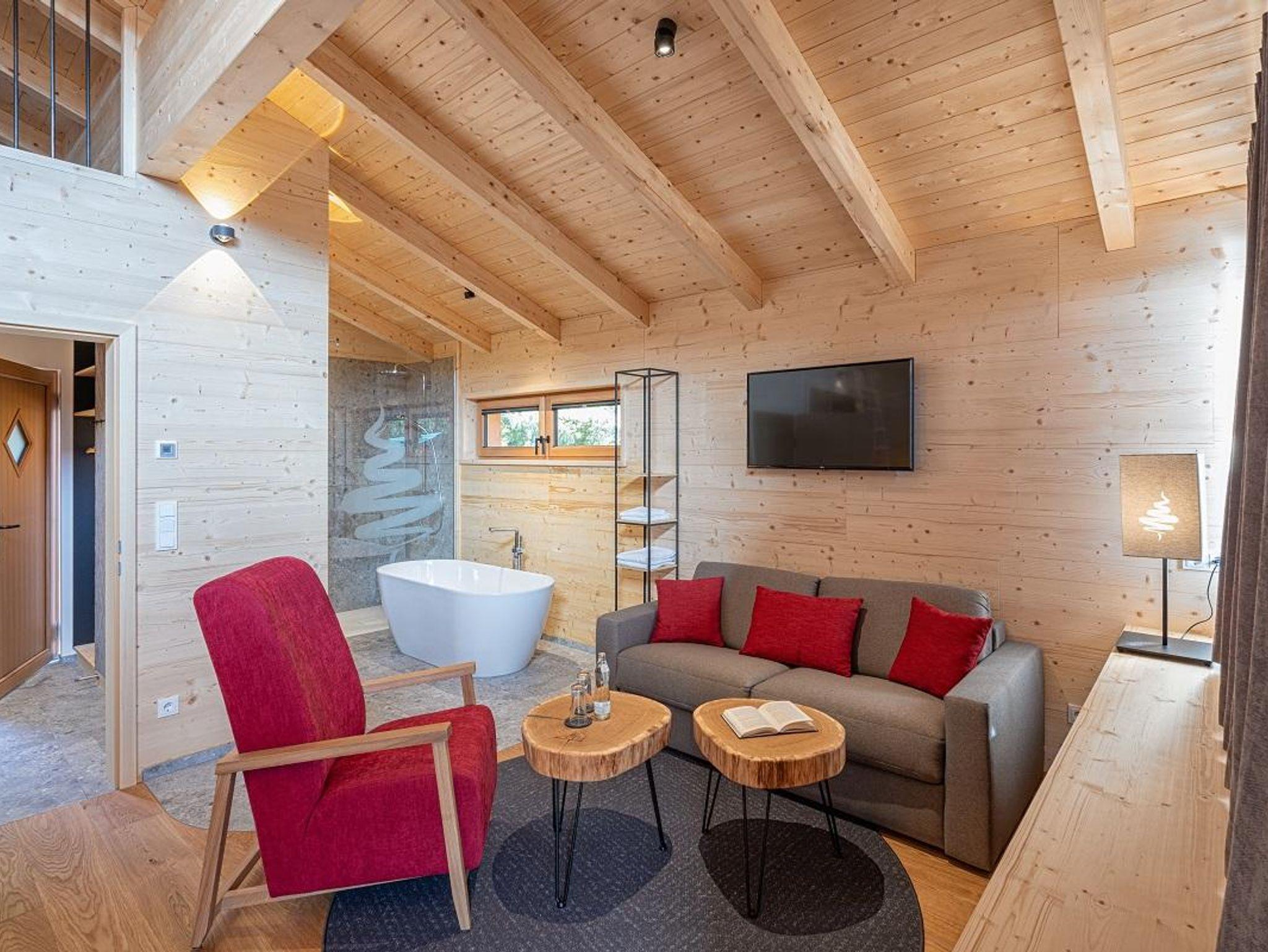 Das Baumhotel Waldloft verfügt über eine Fläche von ca. 45m² und thront, wie auch alle anderen neueren Häuser, ca. 8m über dem Boden. Das Baumhotel mit Loft-Design bietet einen großen, offenen und hohen Raum mit Kuschelecke und lädt in dieser individuellen Atmosphäre zum Wohlfühlen ein. Das Waldloft bietet einen großen offenen und hohen Raum mit Kuschelecke, freistehender Badewanne und Regendusche. Genießen Sie die Zeit zu zweit und erleben einen unvergesslichen Aufenthalt.