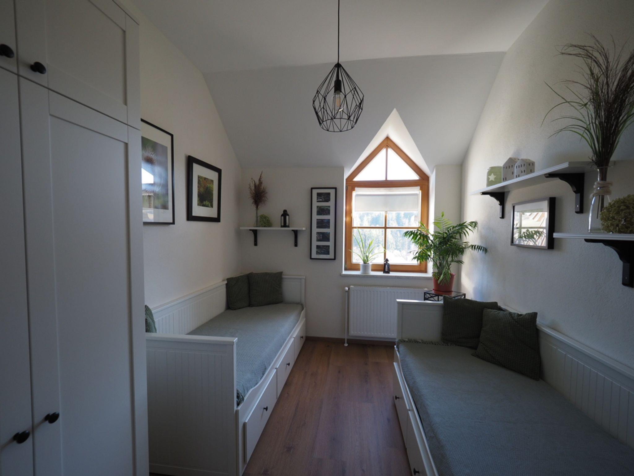 Im kleineren Schlafzimmer (ca. 9qm) befinden sich 2 Einzelbetten (Größen 80 x 200cm).