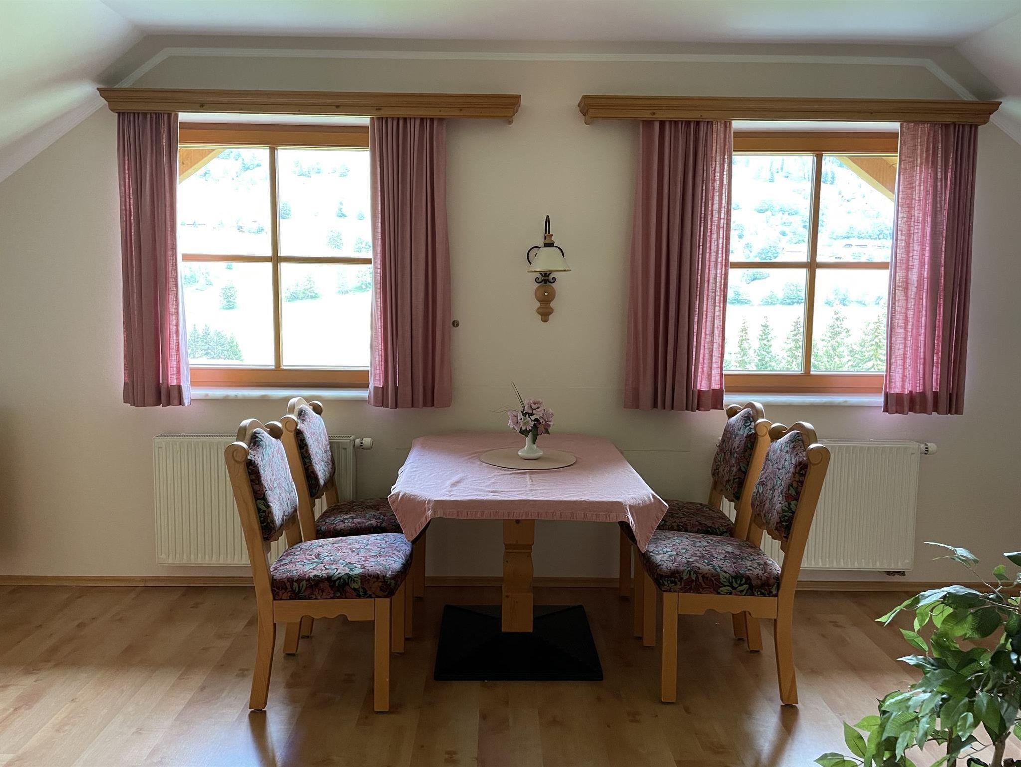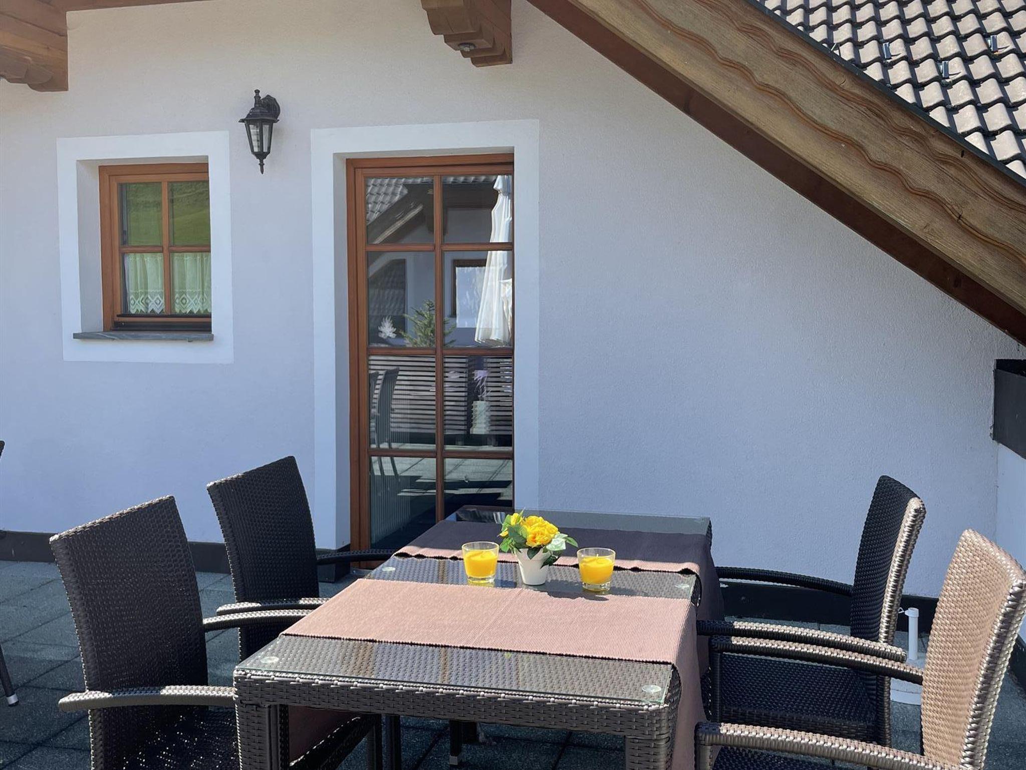 Die Wohnfläche der Ferienwohnung TOP 4 im Dachgeschoss des Ferienhauses Alpenblick beträgt ca. 44 qm, in der bis zu maximal 4 Personen in einem Schlafzimmer und Wohnzimmer nächtigen können. Zur Wohnung gehört eine Dach Terrasse hochwertiger Bestuhlung mit ca. 15 qm Fläche. Die Preise pro Tag richten sich nach Saison und gelten für die Anmietung der gesamten Wohnung unabhängig von der Maximalbelegung (bis maximal 4 Personen). Eine Waschmaschine und ein Wäschetrockner im Haus können genutzt werden. Parkplätze vor dem Ferienhaus sind kostenlos. Alle Preise sind Endpreise und zuzüglich Kur und Ortstaxe.**Am Eingang gibt es einen Schlüsselsafe mit Zugangscode. Diesen erhalten Sie 5 Tage vor ihrer Anreise!