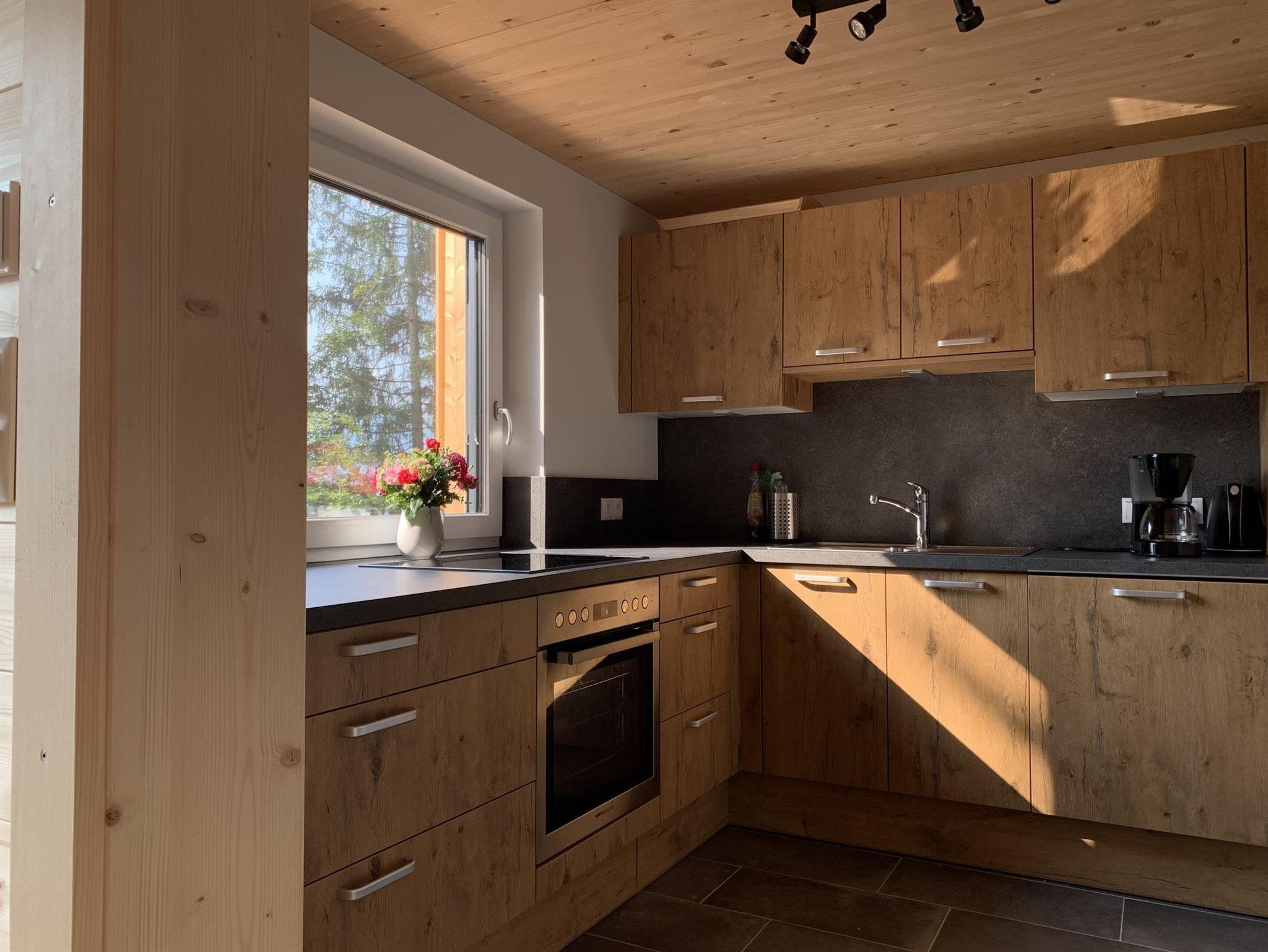 Im Erdgeschoss befindet sich die voll ausgestattete Küche mit Geschirrspüler, Kühlschrank mit Gefrierfach, Backofen und Herd, Kaffeemaschine, Wasserkocher, Toaster.