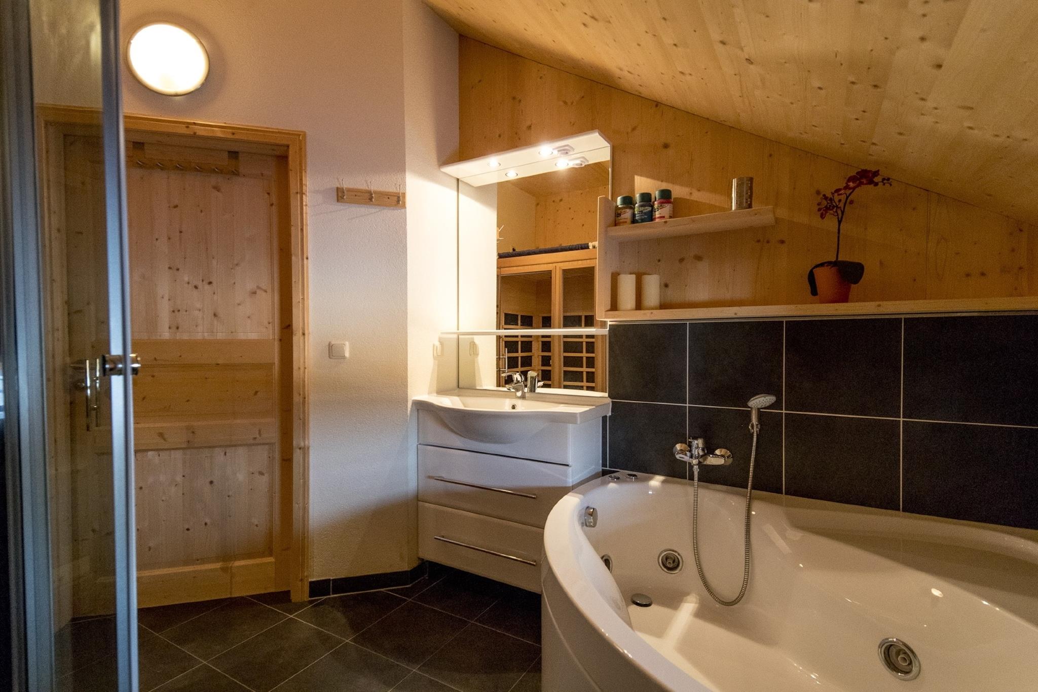 Stueetage: (entre(skistøvlevarmere), Stue(Fjernsyn(parabol), DVD-afspiller, radio, CD-afspiller, gaspejs), åbent køkken(elkedel, brødrister, komfur(glaskeramisk), kaffemaskine(espresso, kaffetragt), ovn, grill, mikrobølgeovn, opvaskemaskine , køle-fryseskab, ()), badeværelse(bruser, håndvask, toilet, føntørrer), Internetadgang) På 1. etage: (soveværelse(dobbeltseng, Fjernsyn), soveværelse(dobbeltseng), soveværelse(enkeltseng, køjeseng), soveværelse med gennemgang(dobbeltseng), badeværelse(hottub, bruser, infrarød sauna, håndvask, toilet)) tremmeseng, vaskemaskine, varme(elektrisk, central), terrasse, have, havemøbler, parkering, barneseng, barnestol