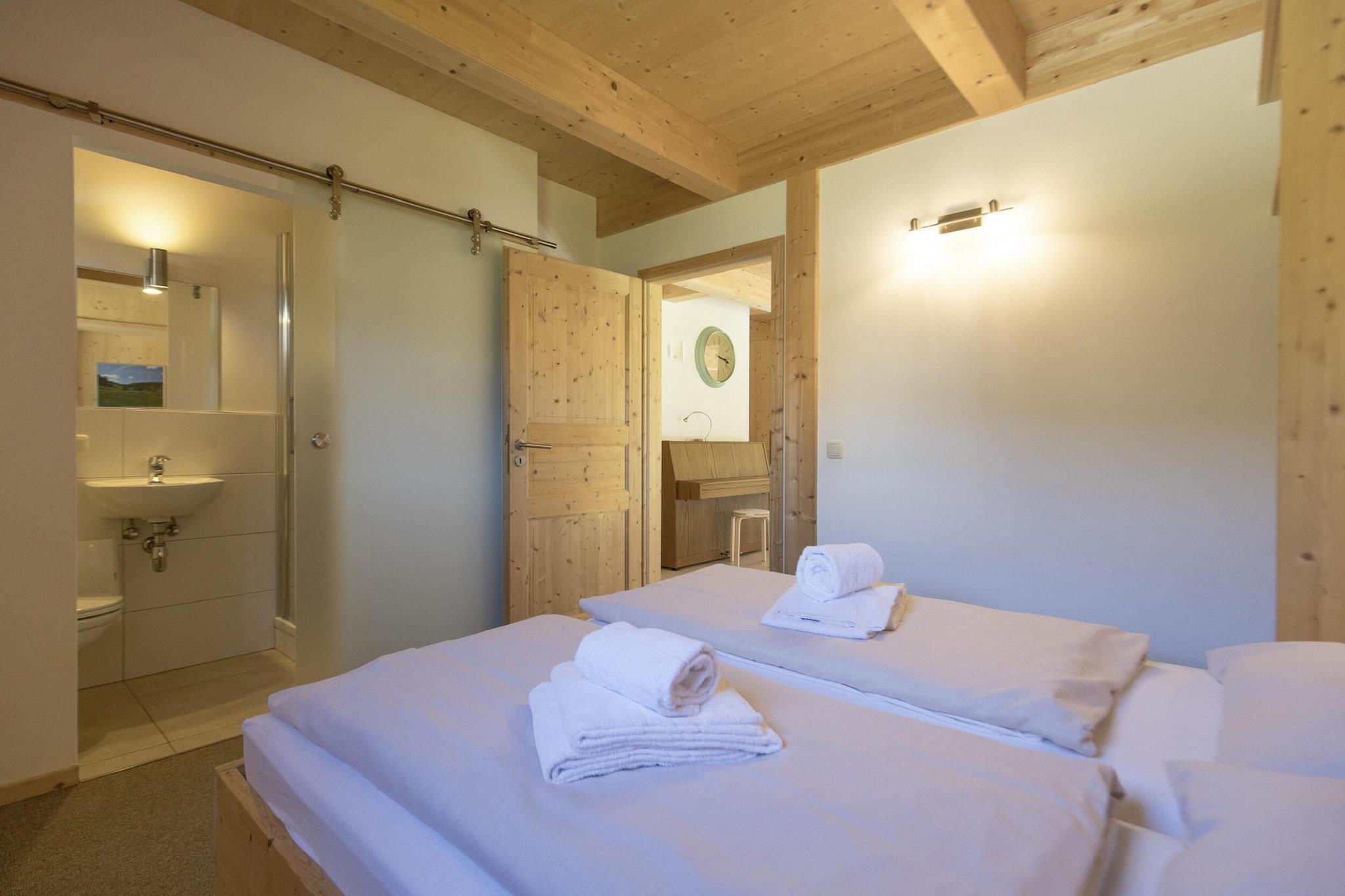 "Velkommen til dit eksklusive tilflugtssted på Kreischberg Valley Station, hvor denne deluxe chalet tilbyder en overdådig flugt for op til 12 gæster. Dette feriehus strækker sig over 140 m² elegant designet boligareal og er perfekt til store familier eller grupper, der søger både afslapning og eventyr. Hytten kan prale af fire smukt indrettede soveværelser med dobbeltsenge og et ekstra soveværelse med dobbeltseng og køjeseng, hvilket sikrer god plads til alle. Med tre moderne badeværelser med enten bruser eller indendørs boblebad (hårtørrer medfølger), er bekvemmelighed og komfort garanteret. Højdepunktet i denne deluxe ejendom omfatter et afslappende spabad, et indendørs spabad og en sauna, der giver ultimativ afslapning efter en dag på pisterne eller udforske de fantastiske omgivelser. Beliggende på den øverste plads ved Kreischberg Valley Station, denne hytte tilbyder direkte adgang til verdensklasse skiløb og snowboarding om vinteren, og en række vandre- og cykelstier om sommeren. Murau-Murtal GuestCard (sommer) er inkluderet, og tilbyder forskellige lokale fordele og rabatter for at forbedre dit ophold. Det rummelige opholds- og spiseområde inviterer dig til at slappe af med stil med dets hyggelige opholdsområde og fladskærms-tv, perfekt til at samles og nyde kvalitetstid sammen. Det åbne køkken er fuldt udstyret med alt det væsentlige til dine kulinariske behov, herunder bestik, køkkengrej, en keramisk kogeplade, ovn, opvaskemaskine og et køleskab med fryser. Yderligere apparater såsom en brødrister, elkedel og kaffemaskine er også til din rådighed. For at gøre din ankomst glat, vil der blive leveret et lille startsæt med opvaskemaskiner, opvaskemiddel (prøve), svamp, affaldsposer, rengøringsmidler og et viskestykke. Hold forbindelsen med gratis Wi-Fi og nyd underholdning via satellit-tv. Bemærk venligst, at alle billeder er eksempelbilleder; hver hytte er unikt indrettet for at tilbyde et personligt præg. Der er en e-ladestation til rådighed for elbiler