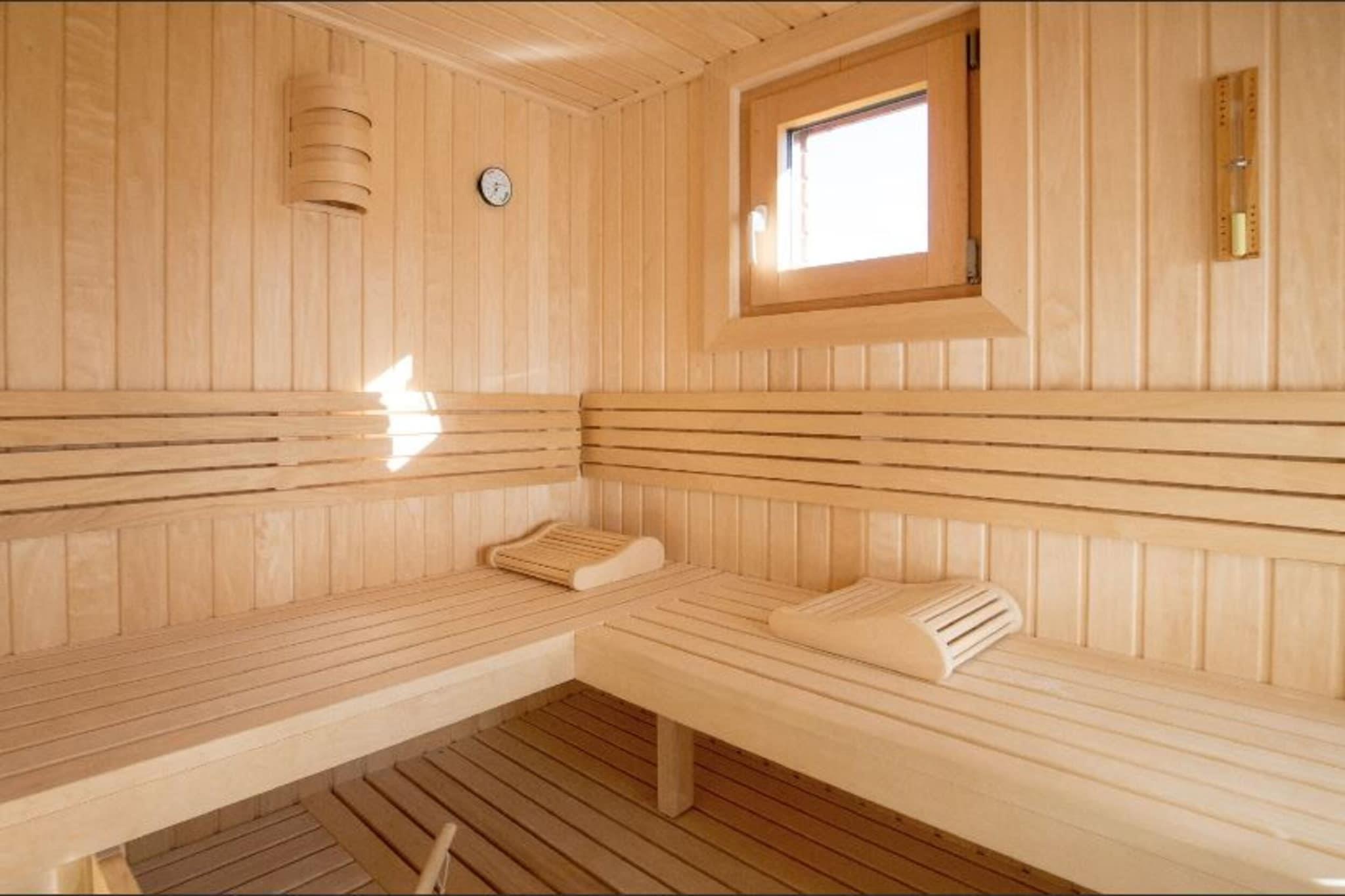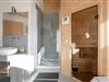Ground floor: (hallway, Living room(TV(satellite), gas fireplace), open kitchen(electric kettle, toaster, cooker(ceramic), coffee machine(filter, fully automatic), oven, dishwasher, fridge-freezer, dishes and cutlery(Bowls, chopsticks, plates, cups, etc.)), bathroom(shower, washbasin, hairdryer), toilet(toilet), Internet access) On the 1st floor: (bedroom(double bed), bedroom(single bed, single bed), bedroom(double bed), bedroom(bunk bed), bathroom(shower, washbasin, toilet), bathroom(shower, washbasin, toilet)) relaxation area(sauna), storage(children's bed, high chair), hot tub, washing machine, heating(electric, central), terrace, garden, garden furniture, parking, drying cabinet