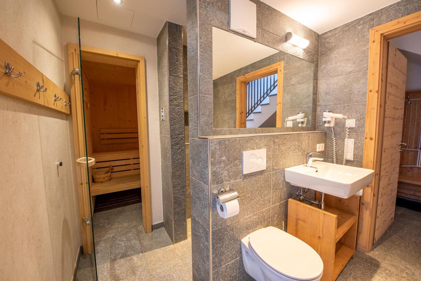 Entspannen Sie nach einem langen Skitag oder einem anstrengenden Wandertag in der hauseigenen Sauna (max. 6 Personen).