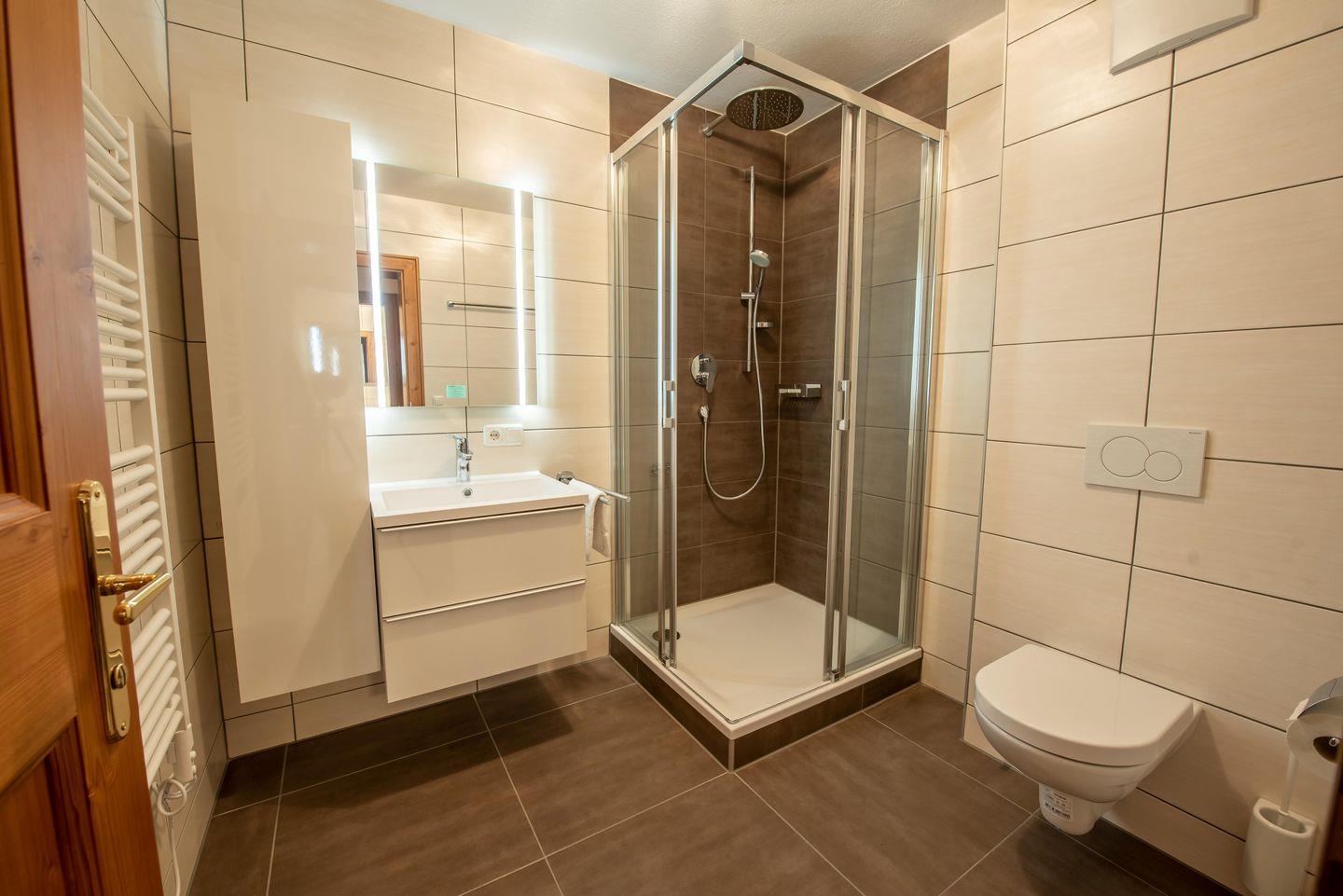 Im Untergeschoss finden Sie ein Badezimmer mit Dusche und Badewanne, ein Badezimmer mit Dusche und WC sowie ein WC extra. Diese Räumlichkeiten wurden 2020 neu renoviert.