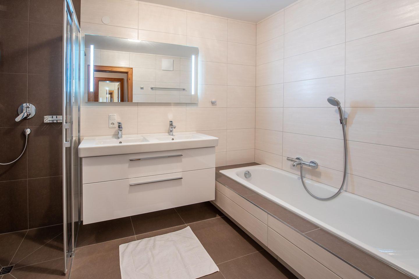 Im Untergeschoss finden Sie ein Badezimmer mit Dusche und Badewanne, ein Badezimmer mit Dusche und WC sowie ein WC extra. Diese Räumlichkeiten wurden 2020 neu renoviert.