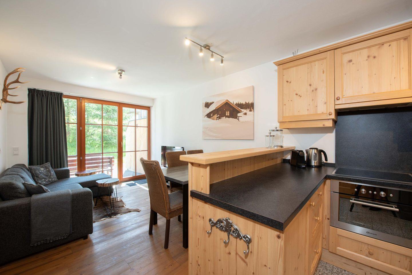 Die komplett eingerichtete Küche und der Essbereich laden zum gemeinsamen Kochen und Verweilen ein. Wer ein bisschen mehr Abwechslung sucht, findet in der näheren Umgebung Restaurants wie auch Apres Ski Lokale, die bestimmt eine passende Alternative anbieten.