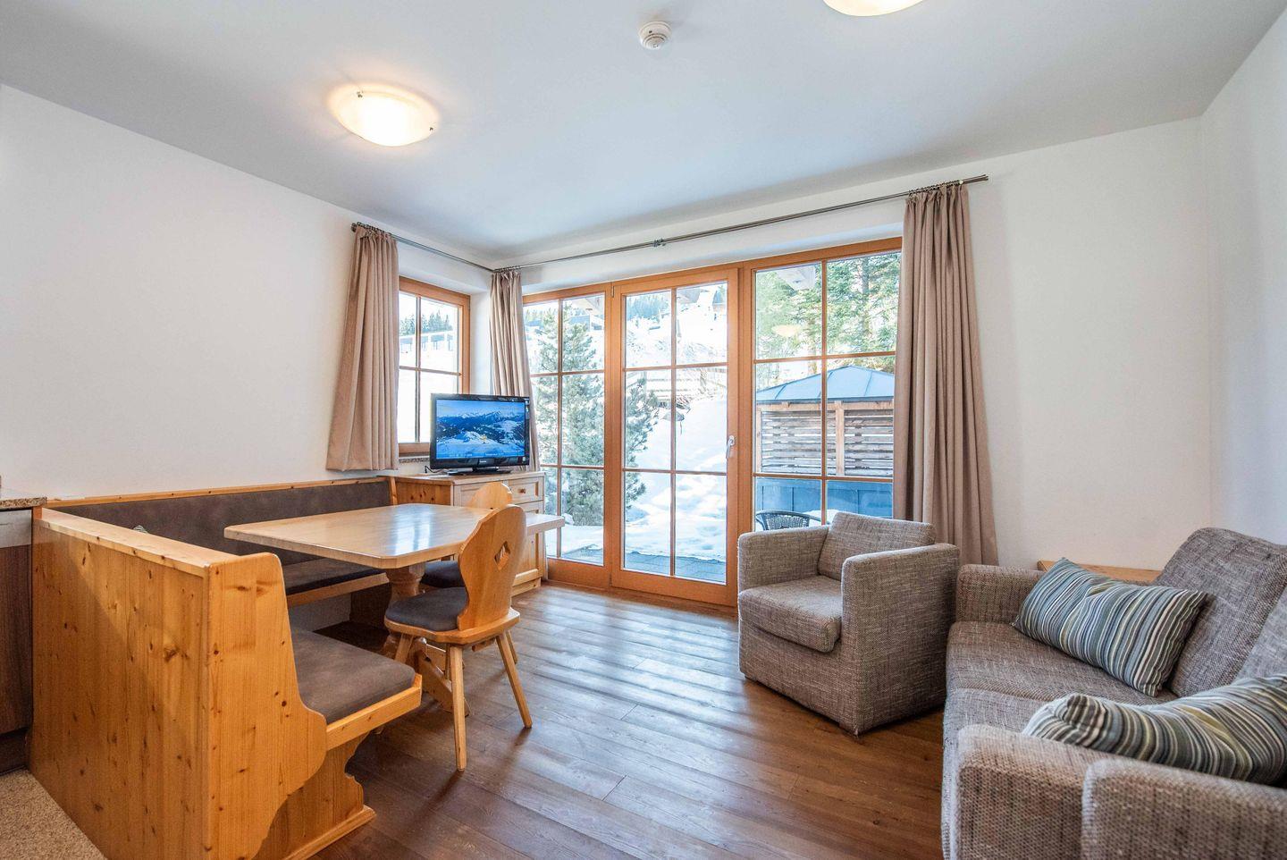Die Ferienwohnung Duxeranger D Top 1 in Hochkrimml bietet auf 45 m² Platz für bis zu 6 Gäste. Zwei Schlafzimmer, eine offene Küche, Terrasse sowie digitale TV-Anbindung und WLAN sorgen für Komfort. Fußbodenheizung, gemeinschaftlich nutzbare Waschmaschine und Trockner sowie Nähe zu Skilift und Einkaufsmöglichkeiten machen sie ideal für Familien und Aktivurlauber.