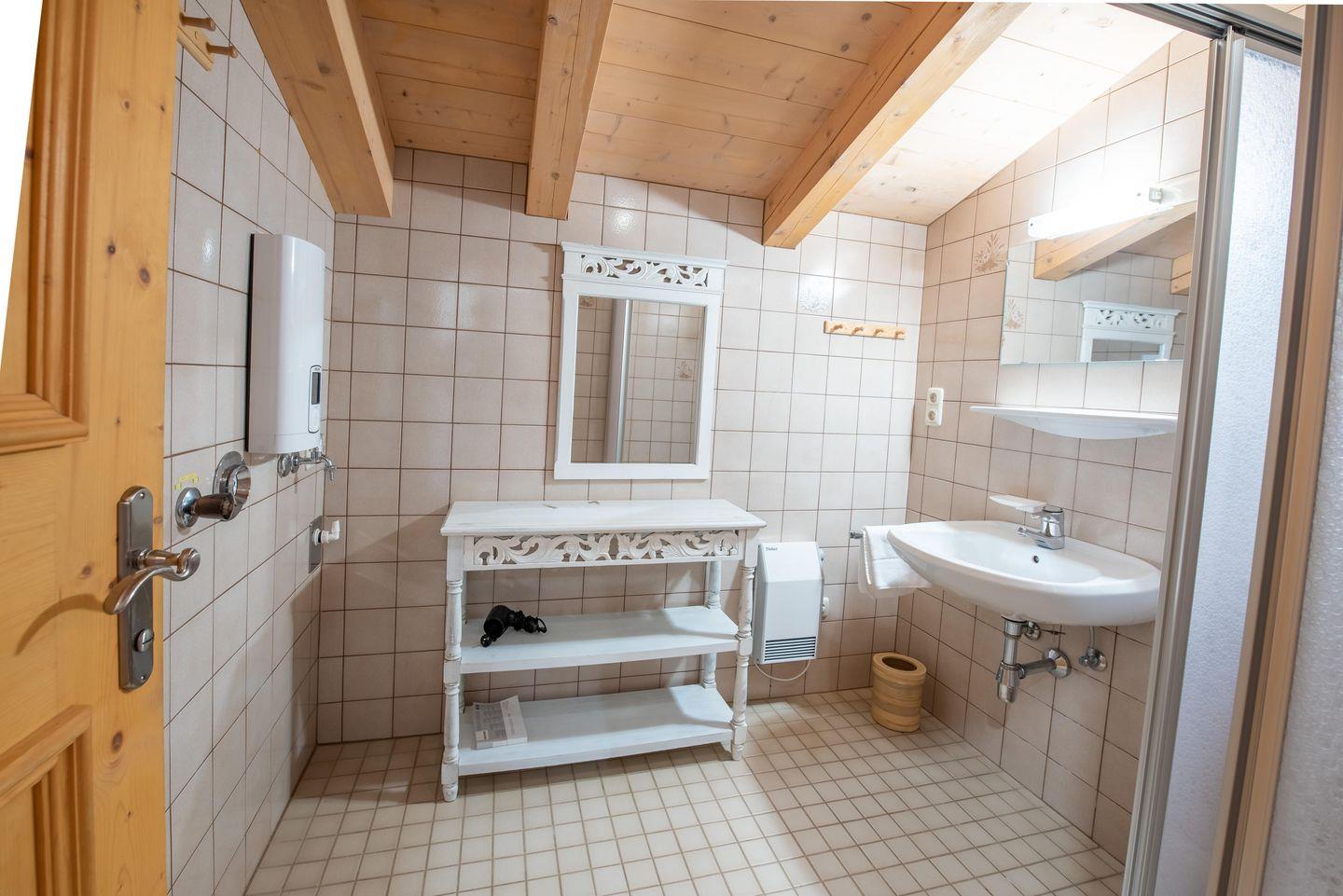 Bitte beachten Sie jedoch, dass ein Doppelbett unter der Dachschräge plaziert ist und hier nur eine geringe Standhöhe zur Verfügung steht! Ein ideales Plätzchen für Kinder aber auch für Erwachsene geeignet!