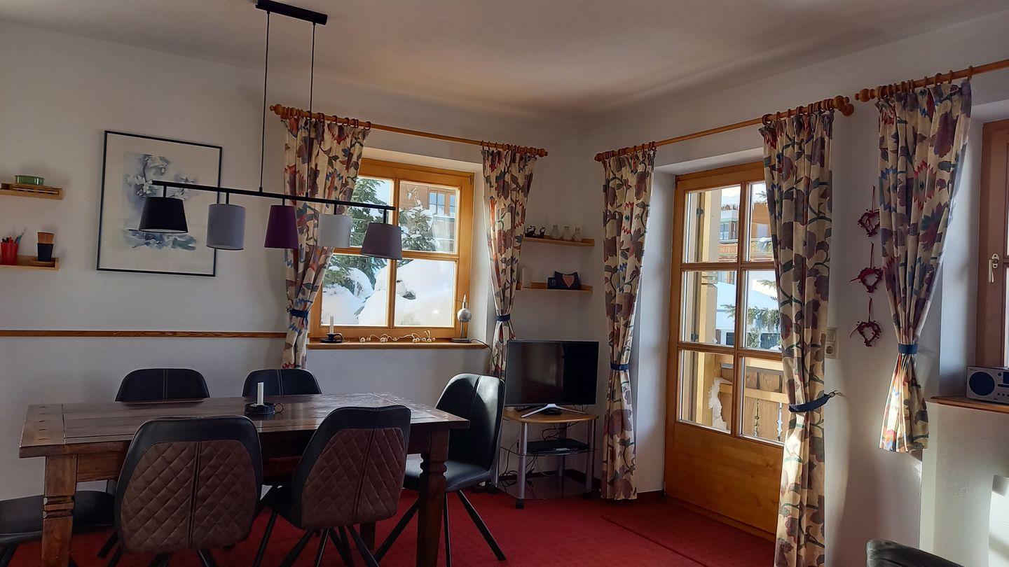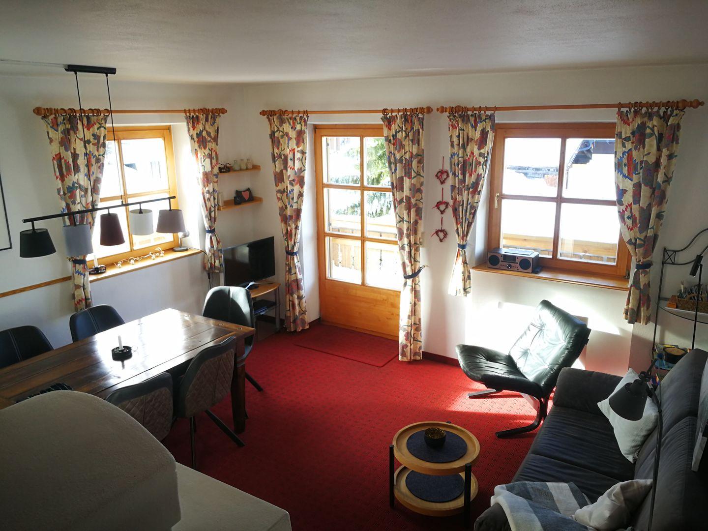Diese im Landhausstil eingerichtete, helle und sonnige Ferienwohnung erstreckt sich über zwei Etagen und bietet Ihnen viel Raum und Zeit zum Entspannen. Der Kamin im Wohnraum schafft eine wohlige Atmosphäre und entspannte Behaglichkeit. Ein schöner Balkon mit Ausrichtung nach Süden und Westen lädt zum Verweilen ein und bietet ein Panorama in die herrliche Bergwelt.