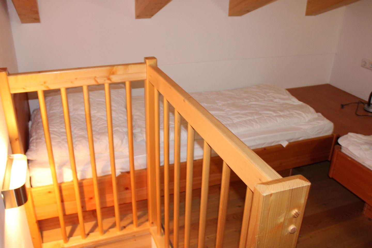 Hinweis: Dachgeschoss - zwei Einzelbetten der Aufgang ist offen, keine Tür vorhanden und ein abgetrenntes Schlafzimmer!