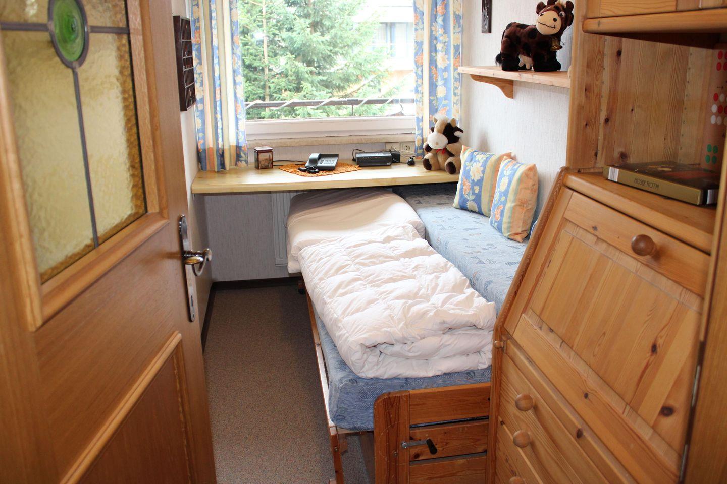 Hinweis: ein Schlafzimmer mit einem Wasserbett mit zwei getrennten Kammern (220 cm lang).