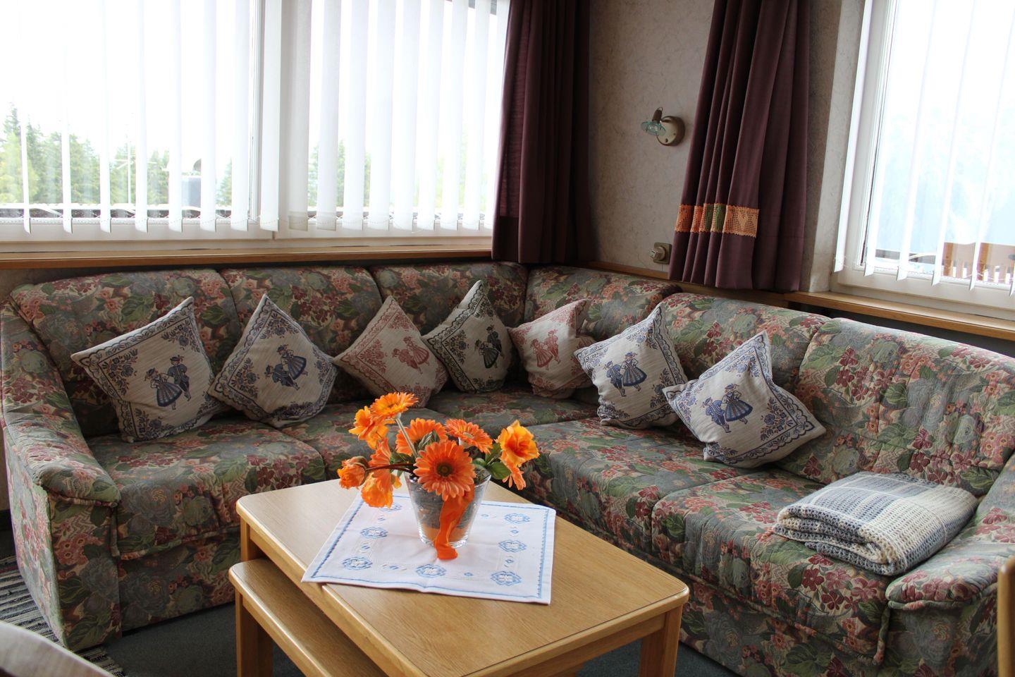 Die ortstypisch in Holz gehaltene Wohnung ist ausgestattet mit gemütlichen Sitzmöglichkeiten und verfügt über einen herrlichen Südbalkon. Wer lieber selbst kocht als eines der in der Nähe liegenden Restaurants aufzusuchen, findet hier eine komplett ausgestattet Küche mit Herd und Geschirrspüler, so dass zu Hause bleiben eine wirklich ansprechende Option ist.