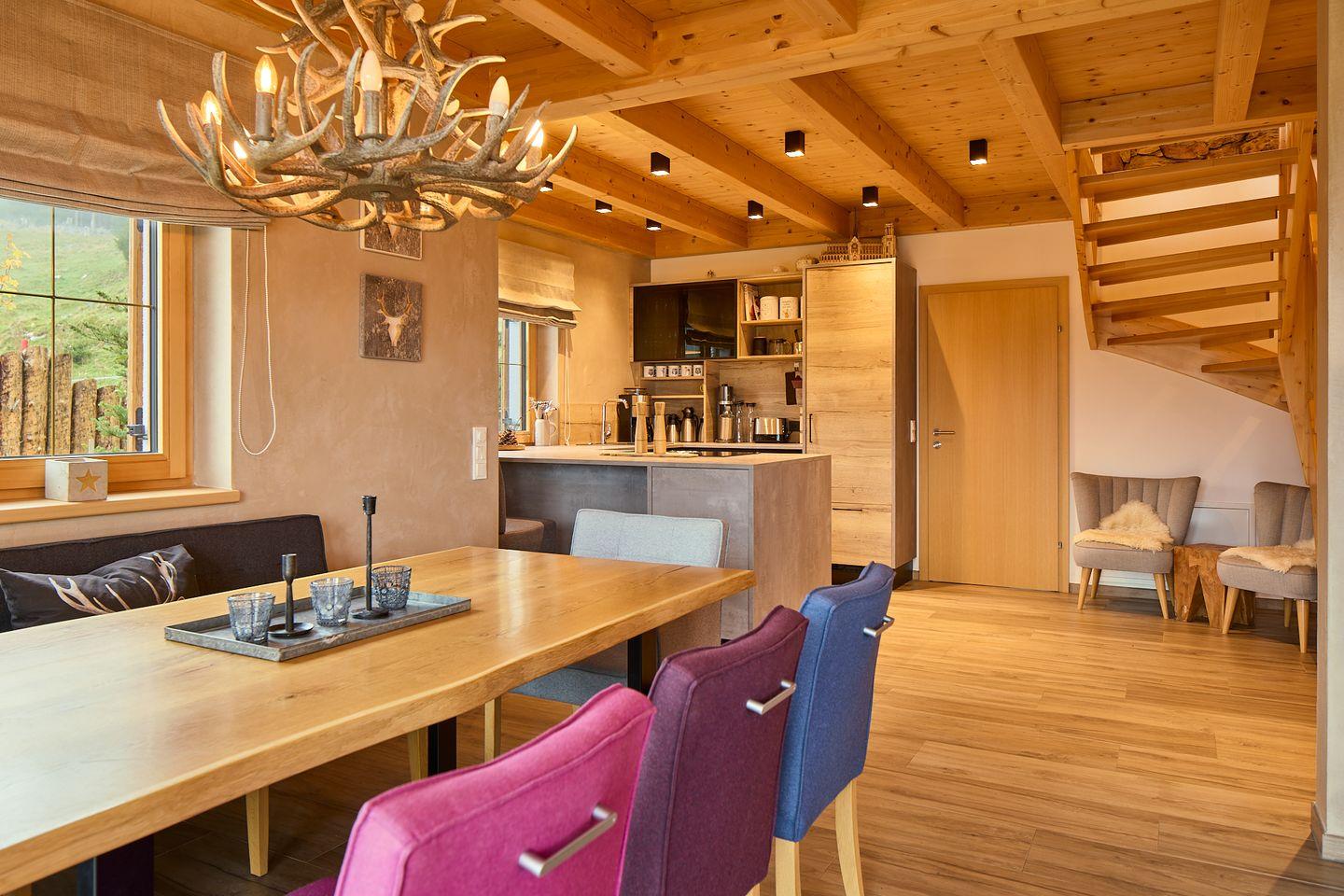 Die komplett eingerichtete Küche und der großzügige Essbereich bieten viel Platz zum gemeinsamen Kochen und Plaudern. Wer ein bisschen mehr Abwechslung sucht, findet in der näheren Umgebung Restaurants wie auch Apres Ski Lokale, die bestimmt eine passende Alternative anbieten.