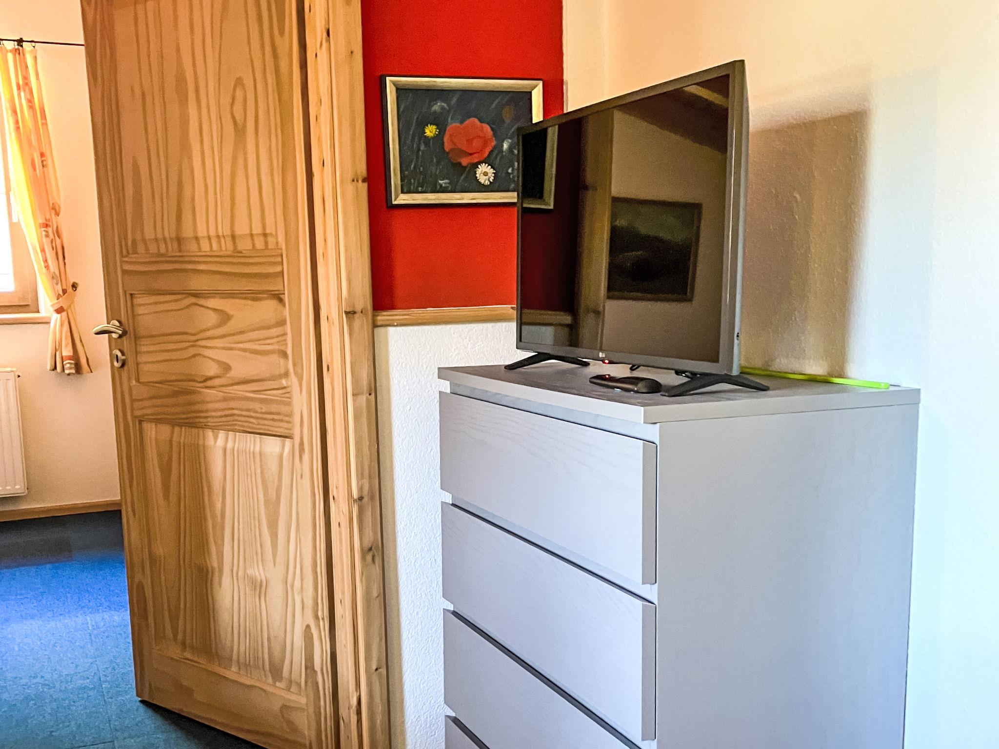 5-room semi-detached house 90 m2 on 2 levels, on the upper floor. Beautiful and cosy furnishings: entrance hall. Upper floor: 1 double bedroom. 1 room with 2 beds. Kitchen-/living room (dishwasher, 4 ceramic glass hob hotplates, kettle, microwave, freezer, electric coffee machine) with dining table and TV (flat screen). Exit to the balcony. Sep. WC, bath/shower/WC, double hand-basin. Heating. Top floor: 1 double bedroom. Kitchen-/living room (2 hot plates, microwave, electric coffee machine) with 1 bed, dining nook and TV (flat screen). Very beautiful view of the mountains and the countryside. Facilities: children's high chair, hair dryer. Internet (WiFi, free).