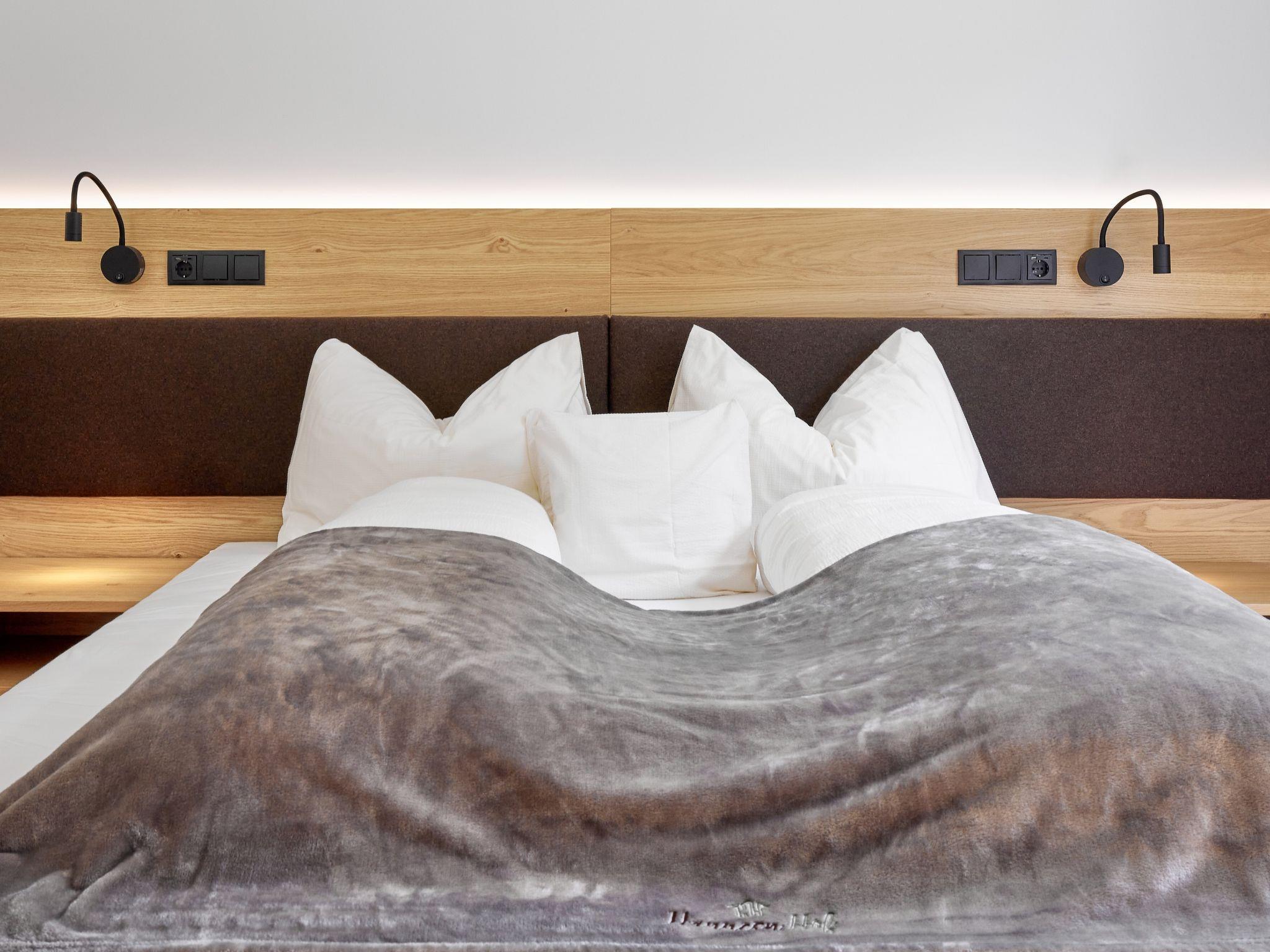 "sGroasse am Hannesnhof", 2-room apartment 84 m2, on the upper floor. Bright, tasteful and cosy furnishings: entrance hall. 2 double bedrooms, each room with satellite TV (flat screen). Large kitchen-/living room (oven, dishwasher, 4 ceramic glass hob hotplates, toaster, kettle, electric coffee machine) with 2 double sofabeds (180 cm, length 200 cm), dining nook and satellite TV (flat screen). Exit to the balcony. 2 showers/WC. Underfloor heating. 2 small balconies, east facing position. Balcony furniture. View of the mountains. Facilities: safe, hair dryer. Internet (WiFi, free). Please note: apartment street side. Non-smokers only. Maximum 3 pets/ dogs allowed. Smoke alarm. The large apartment is made up of 2 separate apartments that are next to each other (Berta and Hanna)!