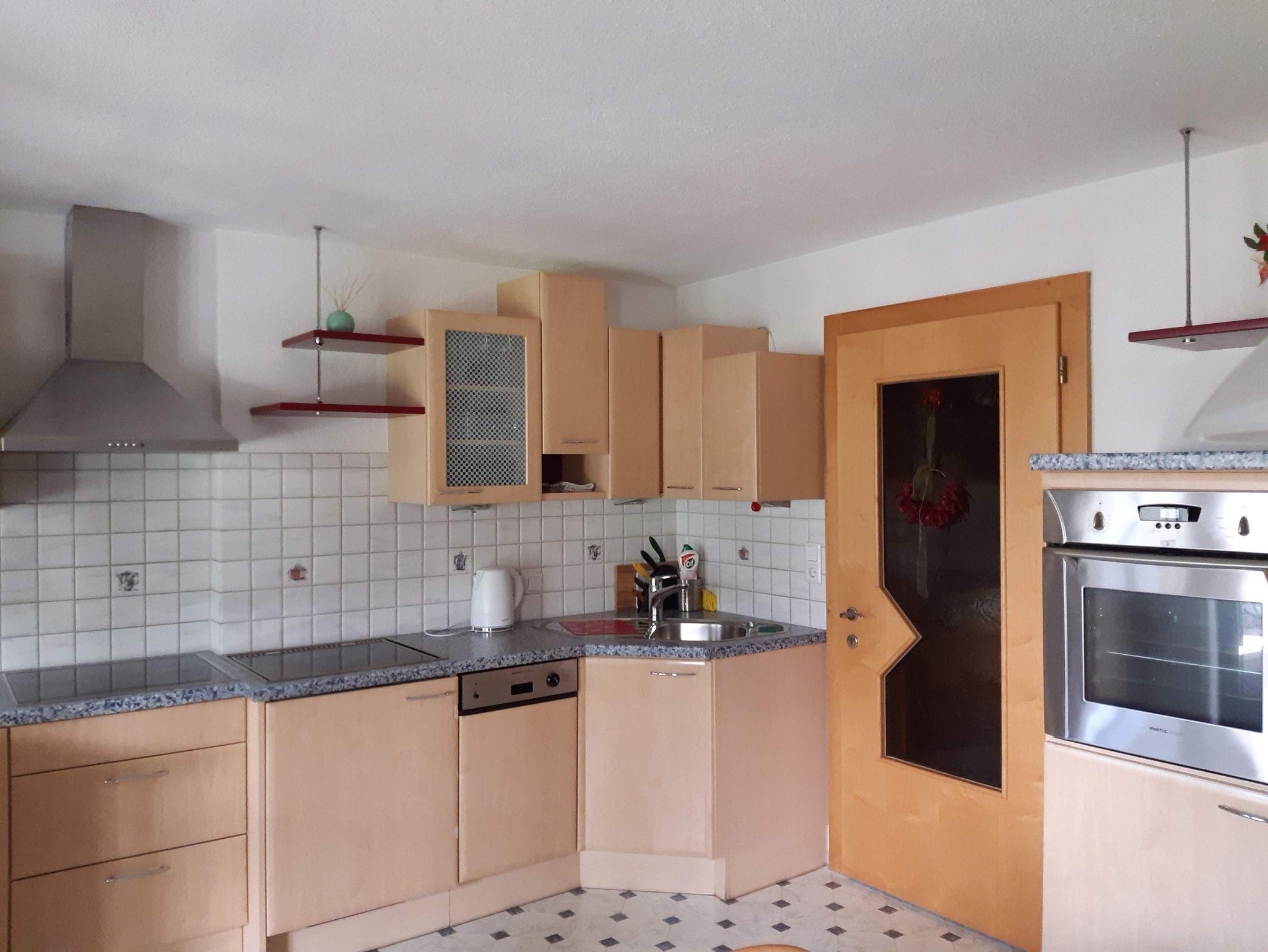 Die Wohnung bietet eine geräumige Küche, ausgestattet mit Kochfeld, Backofen, Kühlschrank, Mikrowelle, Geschirrspüler, Wasserkocher, Toaster, Filterkaffeemaschine, Geschirr und Besteck. Der Küche vorgelagert ist ein schöner Wintergarten mit einer chilligen Sitzecke. Der Wintergarten ist nicht beheizt - außer die Sonne tut es.