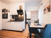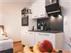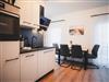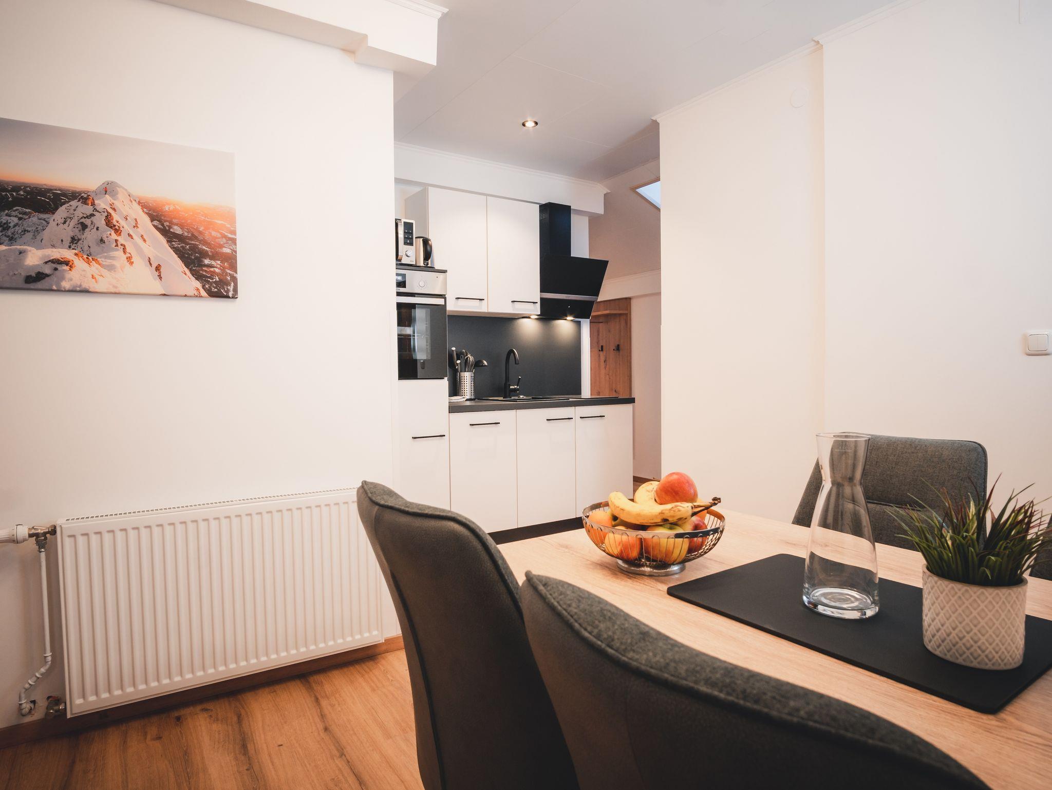 Das Appartement bietet eine voll ausgestattete, moderne Küche mit E-Herd, Backofen, Geschirrspüler, Mikrowelle, Nespresso Kaffeemaschine, Kühlschrank, Wasserkocher, Geschirr und Besteck.