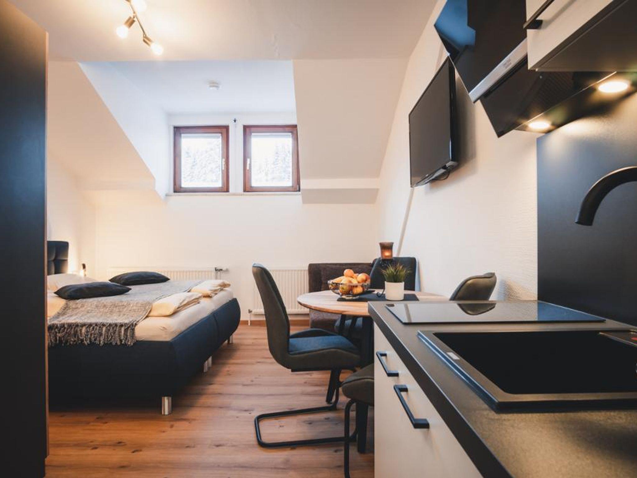 Unser Appartement Ötscherwiese bietet Platz für 4 Personen. Zusätzlich zu den beiden Schlafzimmern steht Ihnen ein großzügiger Wohn-/Essbereich zur Verfügung. Die beiden Schlafzimmer verfügen über FlatTVs, separate Badezimmer und WCs und sind mit Bettwäsche und Handtüchern ausgestattet. WLAN ist inkludiert.