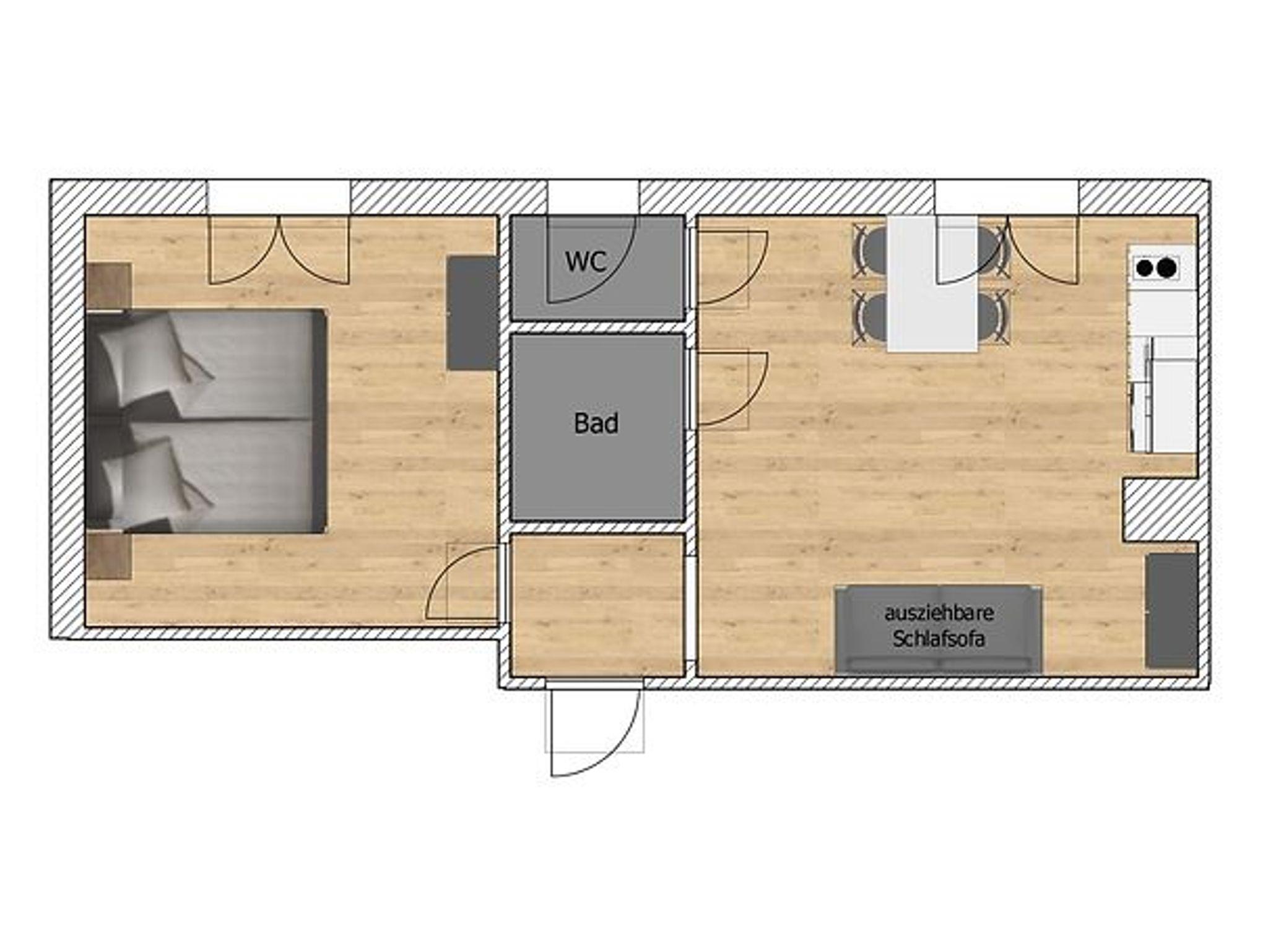 Unser Appartement Ötschergräben bietet Platz für 2-4 Personen. Ein getrenntes Schlafzimmer mit Doppelbett und ein Wohn-/Schlafbereich mit ausziehbarem Schlafsofa. Beide Zimmer verfügen über FlatTVs und sind mit Bettwäsche und Handtüchern ausgestattet. Bad und WC sind getrennt, WLAN ist inkludiert.