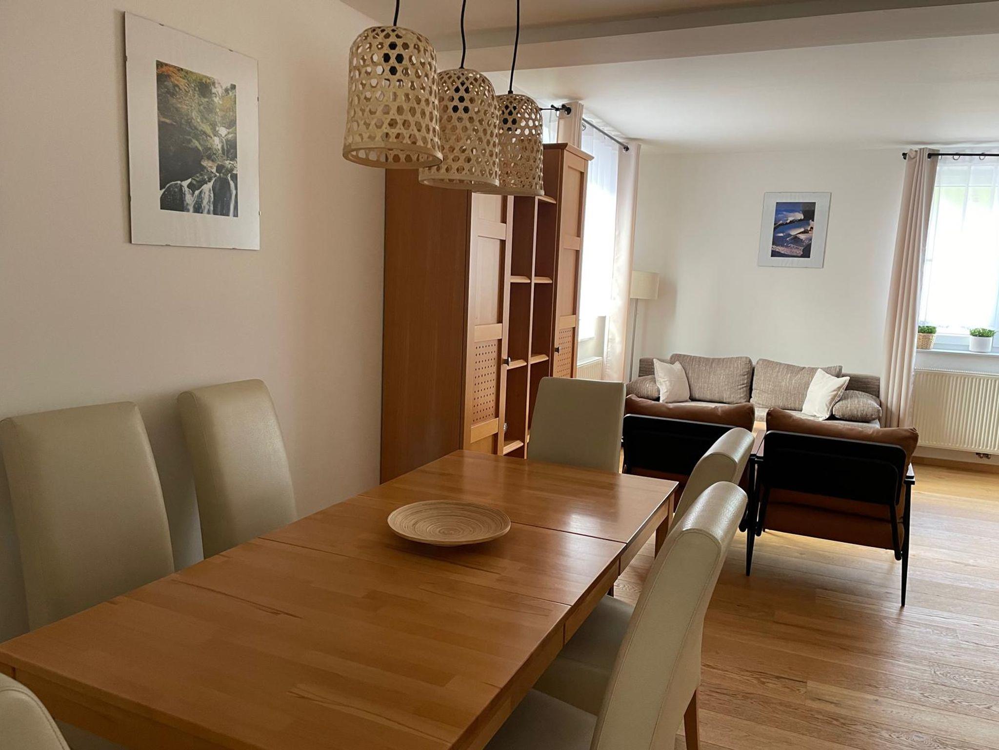 Unser Appartement im Erdgeschoss bietet optimalen Platz für 1-6 Personen. Das gemütliche Wohnzimmer mit Küche, Schlafsofa, Esstisch und Fernseher lädt zum Verweilen ein. Die komplett ausgestattete Küche mit Geschirrspüler, Kühlschrank und Mikrowelle lässt keine Wünsche offen. Die Ferienwohnung verfügt über ein Schlafzimmer mit einem Doppelbett und einem weiterem Schlafsofa. Das geräumige Badezimmer mit Badewanne, Fön, Waschbecken und separatem WC rundet das Gesamtbild ab Die Wohnung verfügt über einen hochwertigen Holzboden. Ebenso steht Ihnen ein kostenloser Parkplatz zur Verfügung. In der hauseigene Skischule und im Verleih gibt es für unsere Gäste Ermäßigungen. Im Almcafe das nur 180 m entfernt ist, werden Sie auf Wunsch mit einem Frühstück verwöhnt.