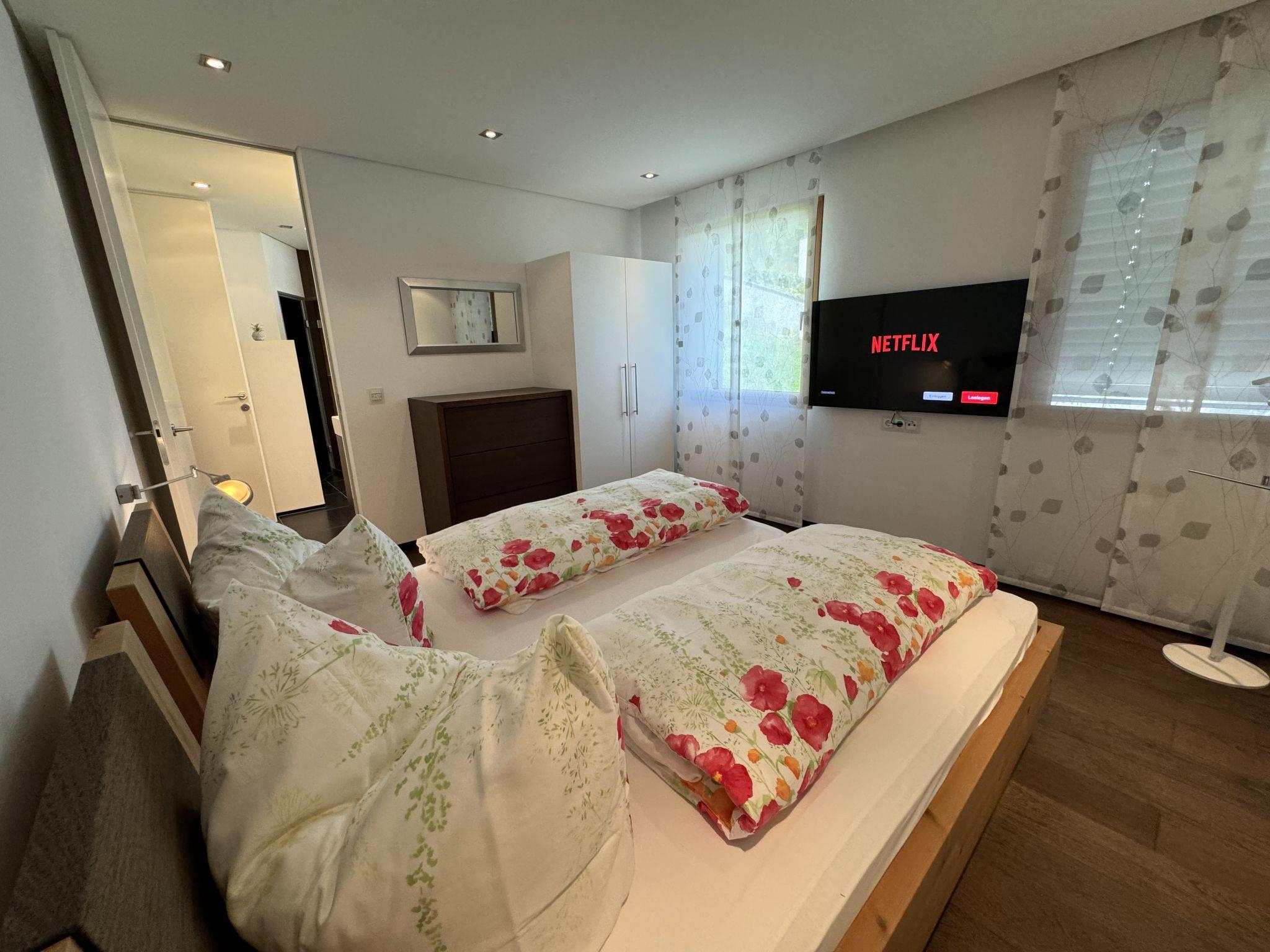Stanz bei Landeck 3 km from Landeck: Modern house "Villa Renate", 2 storeys, built in 2013, surrounded by meadows. Above Landeck, in the resort Stanz, in a quiet position, 600 m from the edge of the forest, 4.3 km from the skiing area. For shared use: swimming pool (seasonal availability: 03.May. - 28.Sep.). Patio (40 m2), garden furniture, barbecue, parking (for 2 cars). Shop 1.8 km, shopping centre 1.5 km, bakery 2 km, pedestrian zone 2.8 km, bus stop "Stanz b.L. Unterkreuzied" 350 m, railway station "Ötztal Bahnhof" 33.2 km. Well-known ski regions can easily be reached: Venet Bergbahnen 3.6 km, See/Kappl 18 km, Serfaus Fiss Ladis 30 km.