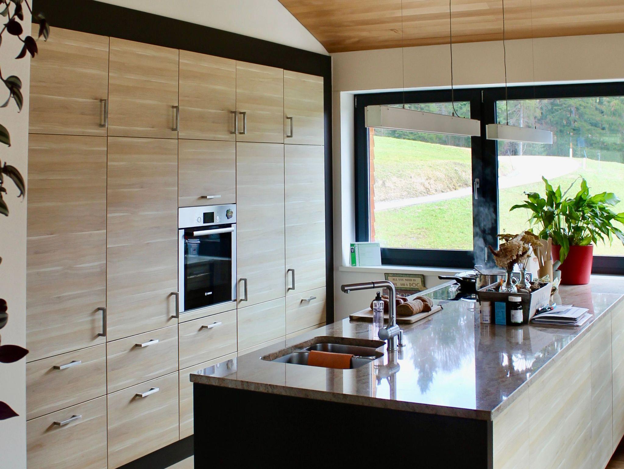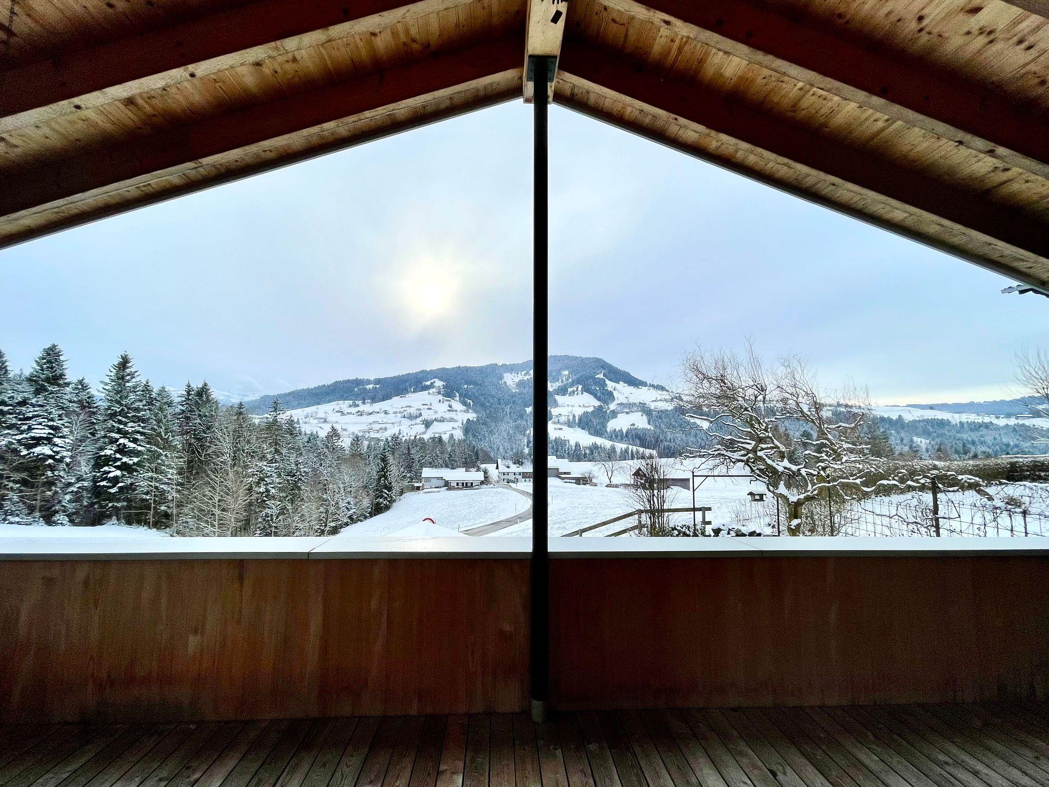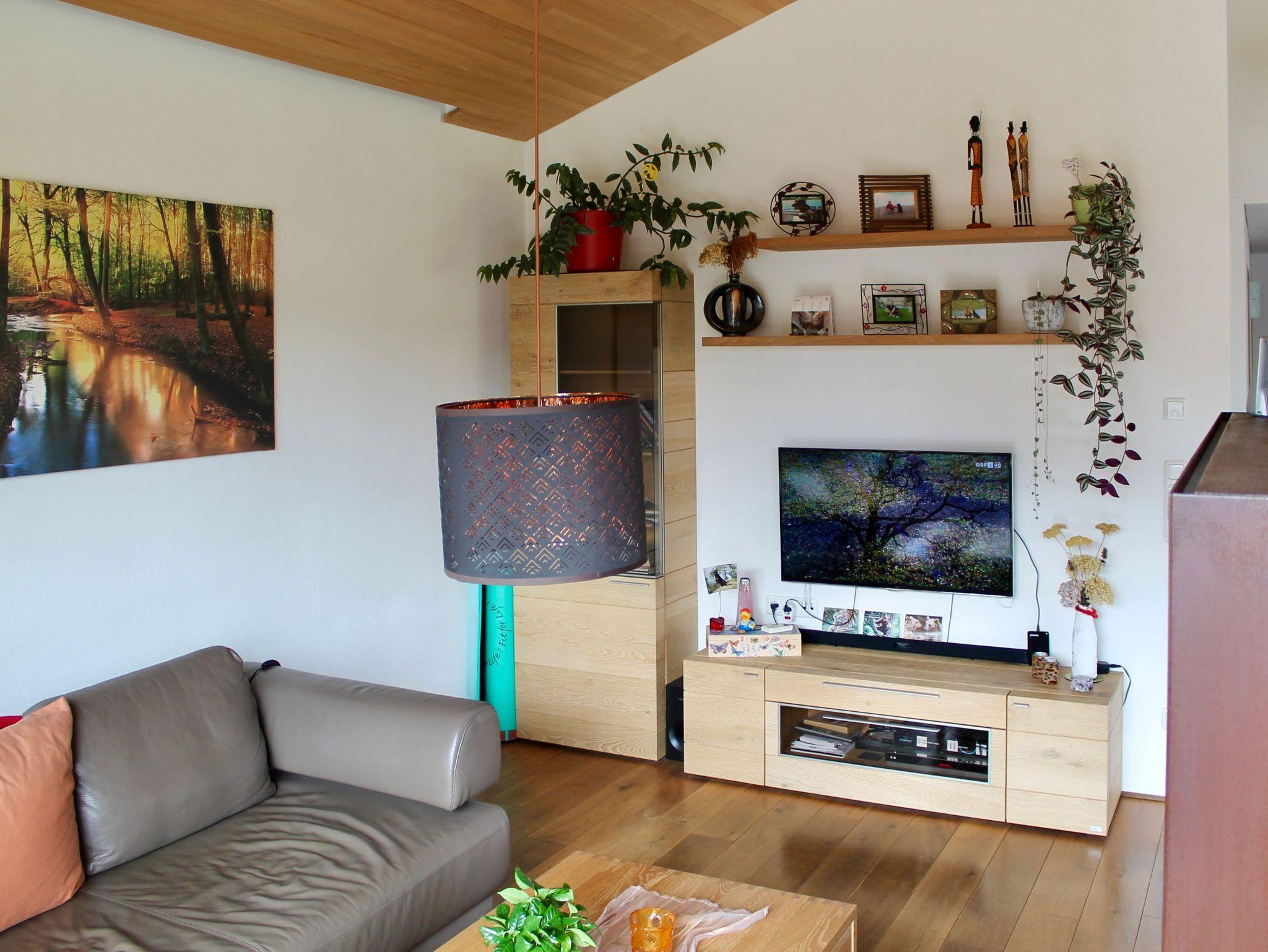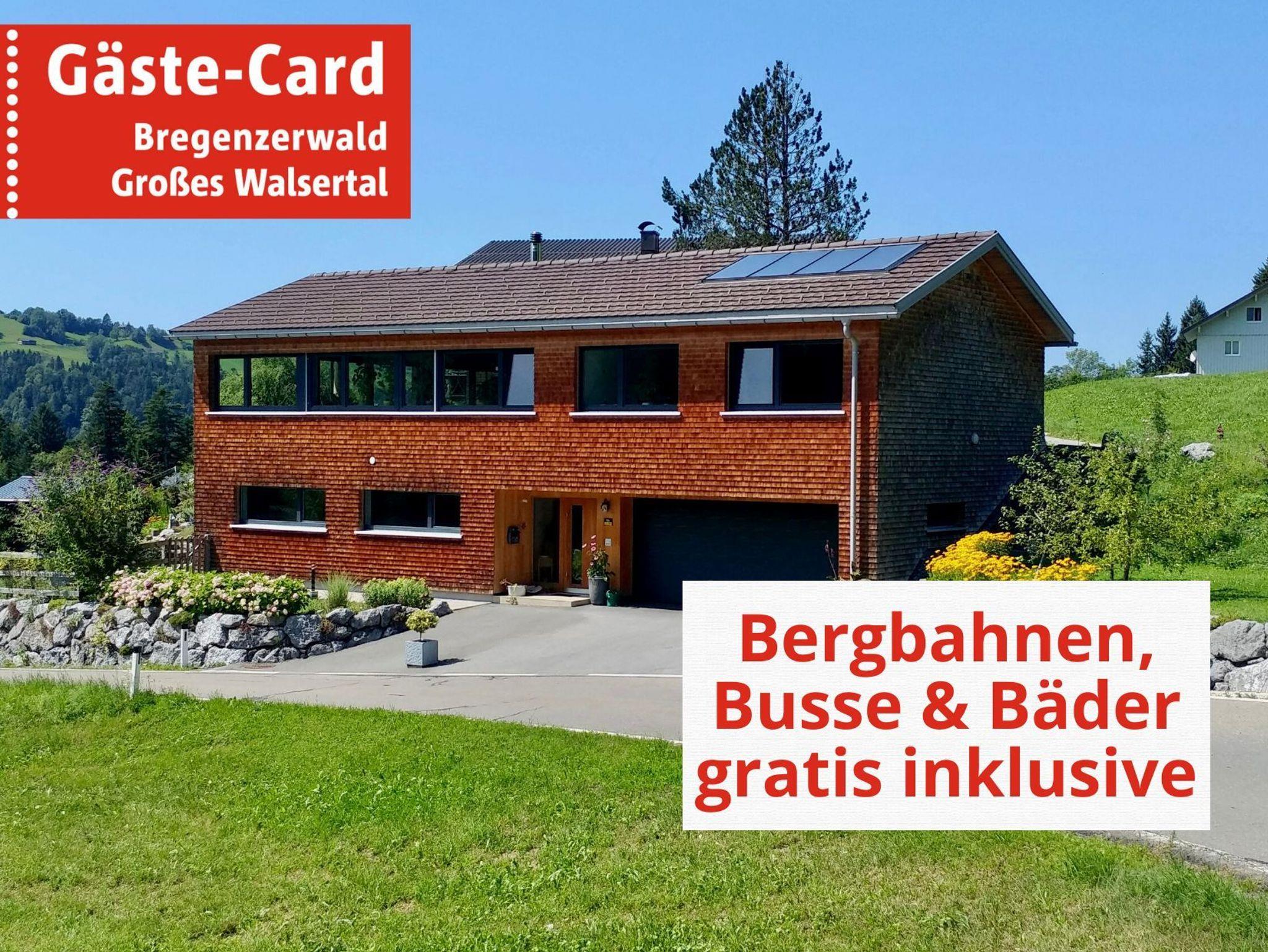 Vollholz Eichenboden und Fliesen, Fussbodenheizung, Erdwärmepumpe, Luftaustausch durch kontrollierte Be- und Entlüftung, moderne bregenzerwälder Bauweise mit Holzschindeln, hoher offener Wohnbereich mit Raumhöhe bis zu 4 m, moderner Holzofen, komplett ausgestattete Wohn-/ Essküche, Bad mit Badewanne und begehbarer Dusche, Schlafzimmer, Büro, überdachte große Terrasse nach Süden, direkter Zugang zum Garten, Parkplätze vor dem Haus