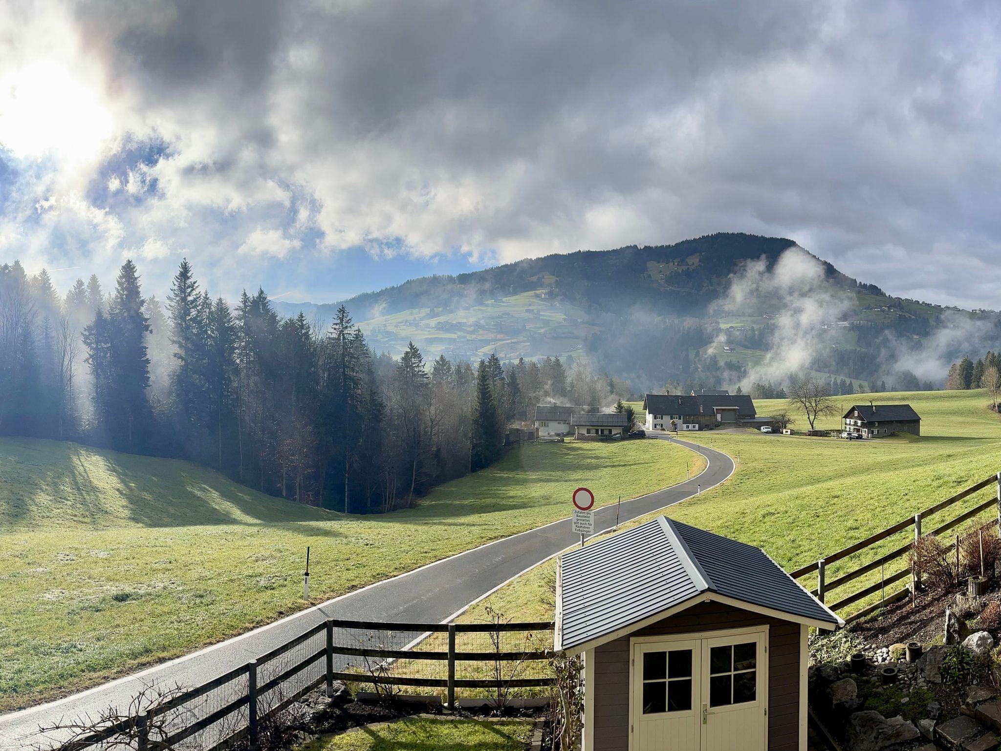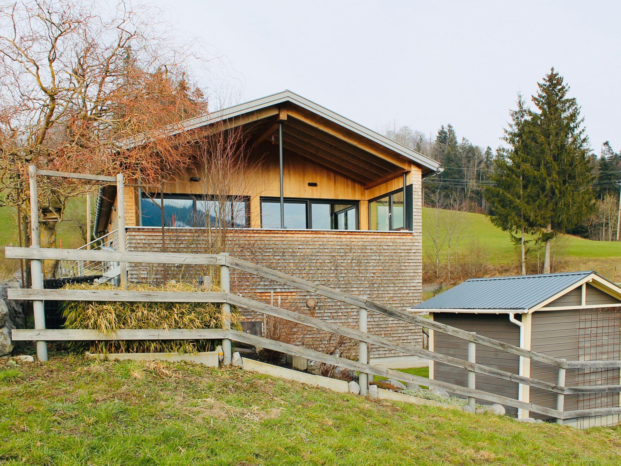 Das Wohnhaus wurde 2011 in moderner Bregenzerwälder Bauweise errichtet und ist komfortabel und komplett ausgestattet. Es verfügt über ein gemütliches Schlafzimmer und ein Büro mit toller Aussicht auf den Wald, ein Bad mit begehbarer Dusche und Badewanne, eine komfortable und komplett ausgestattete Wohn-/ Essküche. Ein moderner Holzofenkamin dient als Raumteiler und Blickfang zwischen der gemütlichen Couchecke und der Wohnküche.