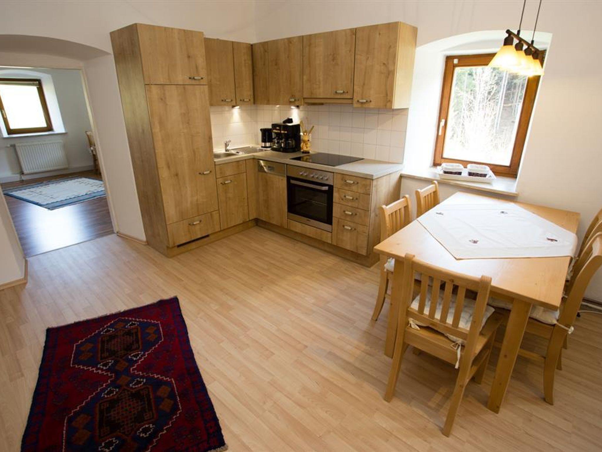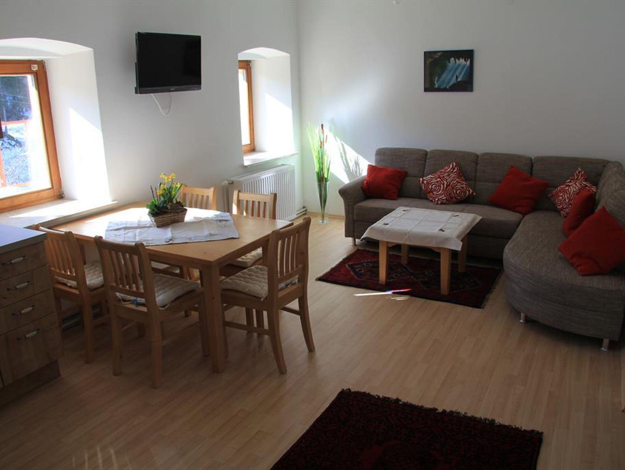 Die Wohnung Mittagskogel wird sie durch Ihren rustikalen Einrichtungsstil überzeugen. Wir bieten Ihnen hier auf ca. 55 Quadratmeter eine 3 Zimmer Wohnung mit zwei Schlafzimmern, Wohnesszimmer mit vollausgestatter Küche mit Glaskeramik Kochfel, Heissluftofen, Kühlschrank so wie seperatem Gefrierschrank, 27 Flachbildschirm Fernseher und Sofa Ecke. 1 Schlafzimmer mit seperater Dusche und Waschbecken Massivholz Doppelbett (1,80) und Kleiderschrank. Schlafzimmer 2 mit ebenfalls 1,80 Doppelbett und Nachtischen aus Massivholz Hinweis , Zugang zu Wohnung oder Badezimmer mit WC von Schlafzimmer 1 nur über Schlafzimmer 2 oder den Hausflur, daher eher für Familie mit Kindern geeignet Die Wohnung hat keinen Balkon aber es stehen Gemeinschaftsplaetze im Garten zur Verfuegung