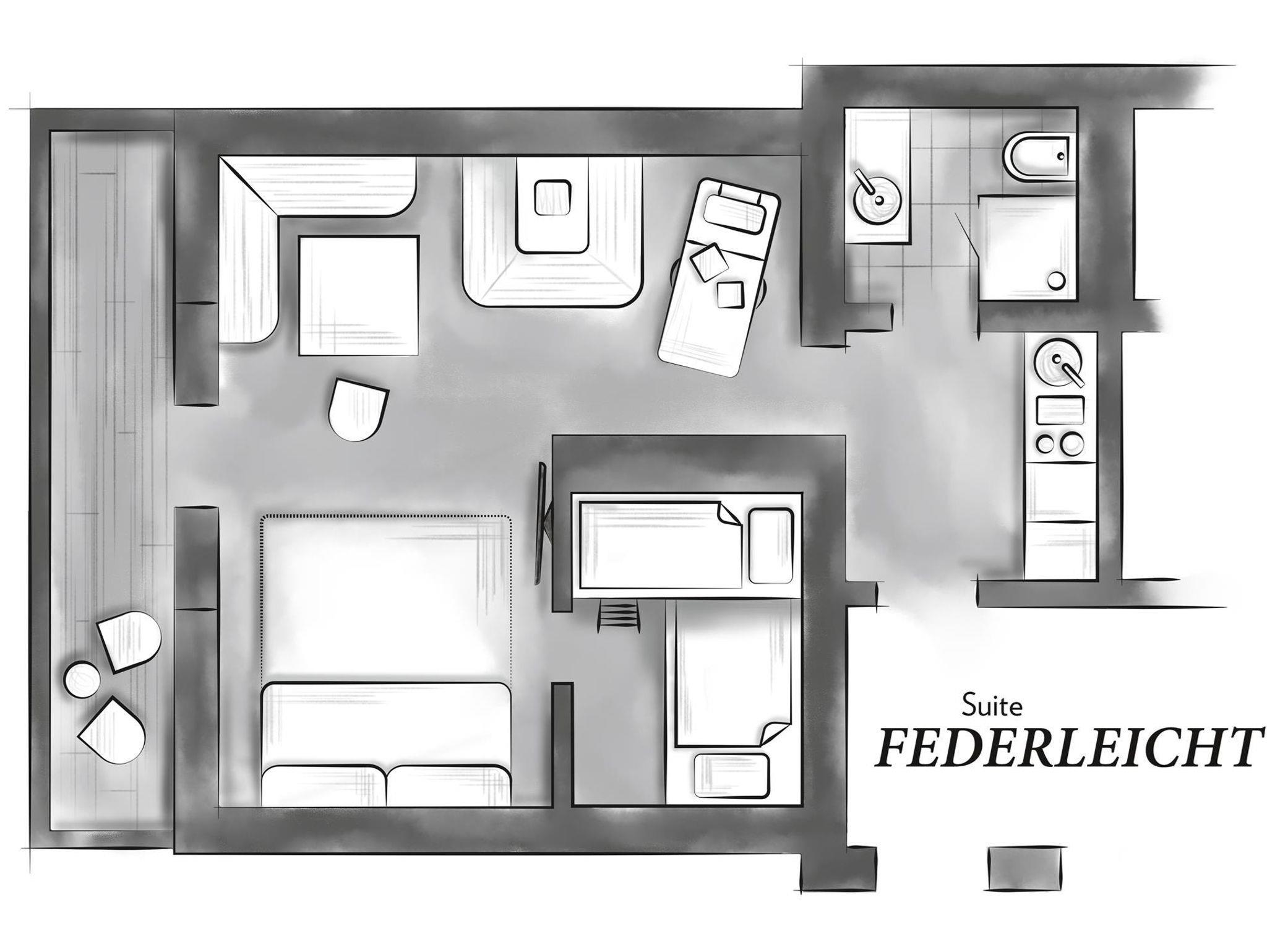 Federleichte Urlaubsmomente in unseren kuscheligen neu, renovierten Suiten genießen. Unsere Suite Federleicht genug Platz für 4 Personen und ist auch für verliebte Pärchen der perfekte Rückzugsort für traute Zweisamkeit.