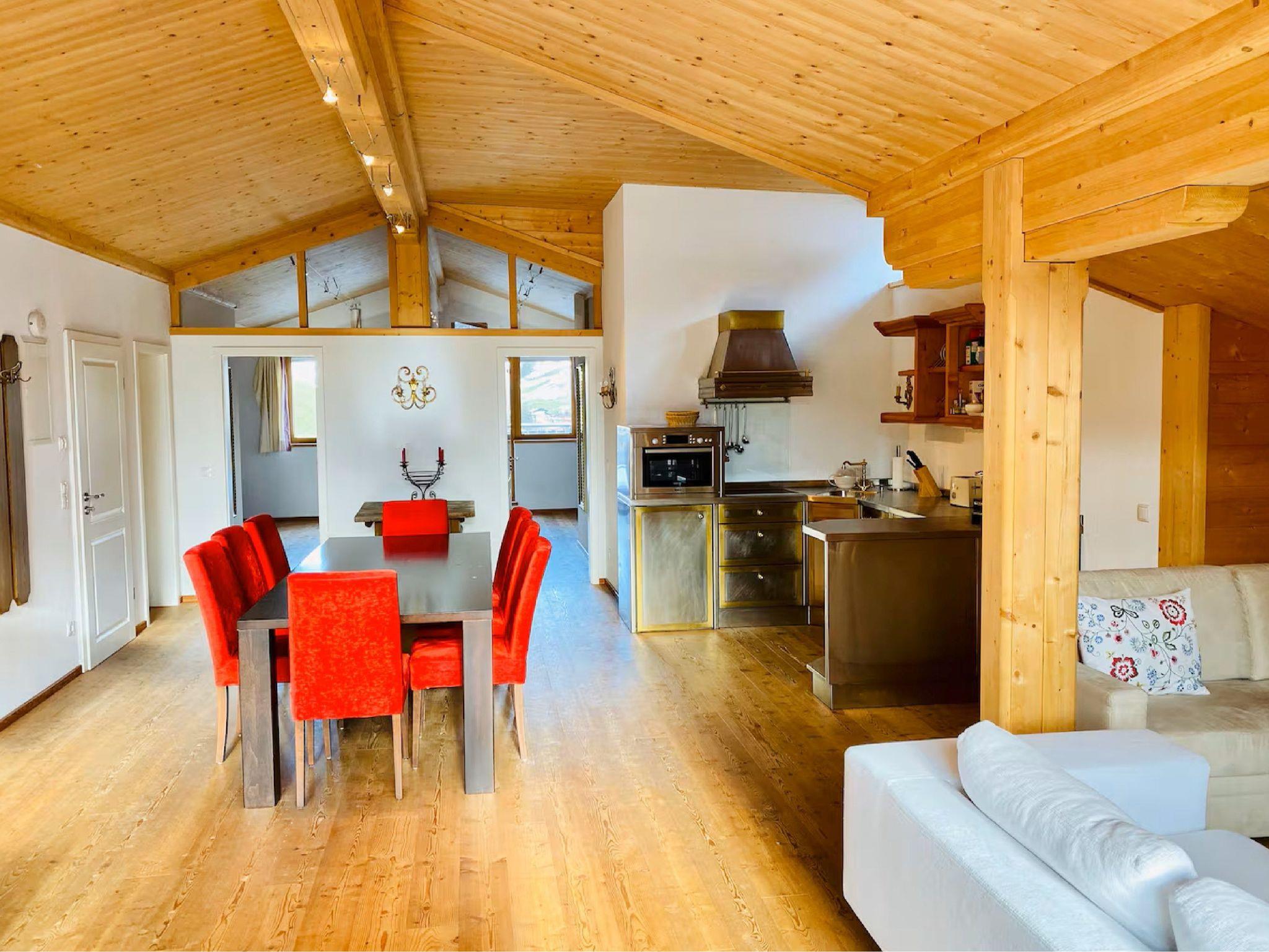 Das Penthouse Wöster in Lech am Arlberg bietet auf ca. 120 m² Platz für 4?8 Personen. Es umfasst 3 Schlafzimmer, davon 2 mit eigenem Bad und 1x mit einem Vorhamg vom Wohnbereich abtrennbar - sowie neben einer Sitzcouch eine Sitz- Schlafcouch für 1-2 Personen. Ein großzügiges Wohn-/Esszimmer mit offener, voll ausgestatteter Küche und eine Terrasse mit Bergblick laden zum Entspannen ein. Ski-In/Ski-Out zum Schloßkopflift möglich. WLAN, Flat-TV, Skikeller, Hund willkommen. Im Winter Allrad/Schneeketten empfohlen. 2 Garagenplätze.